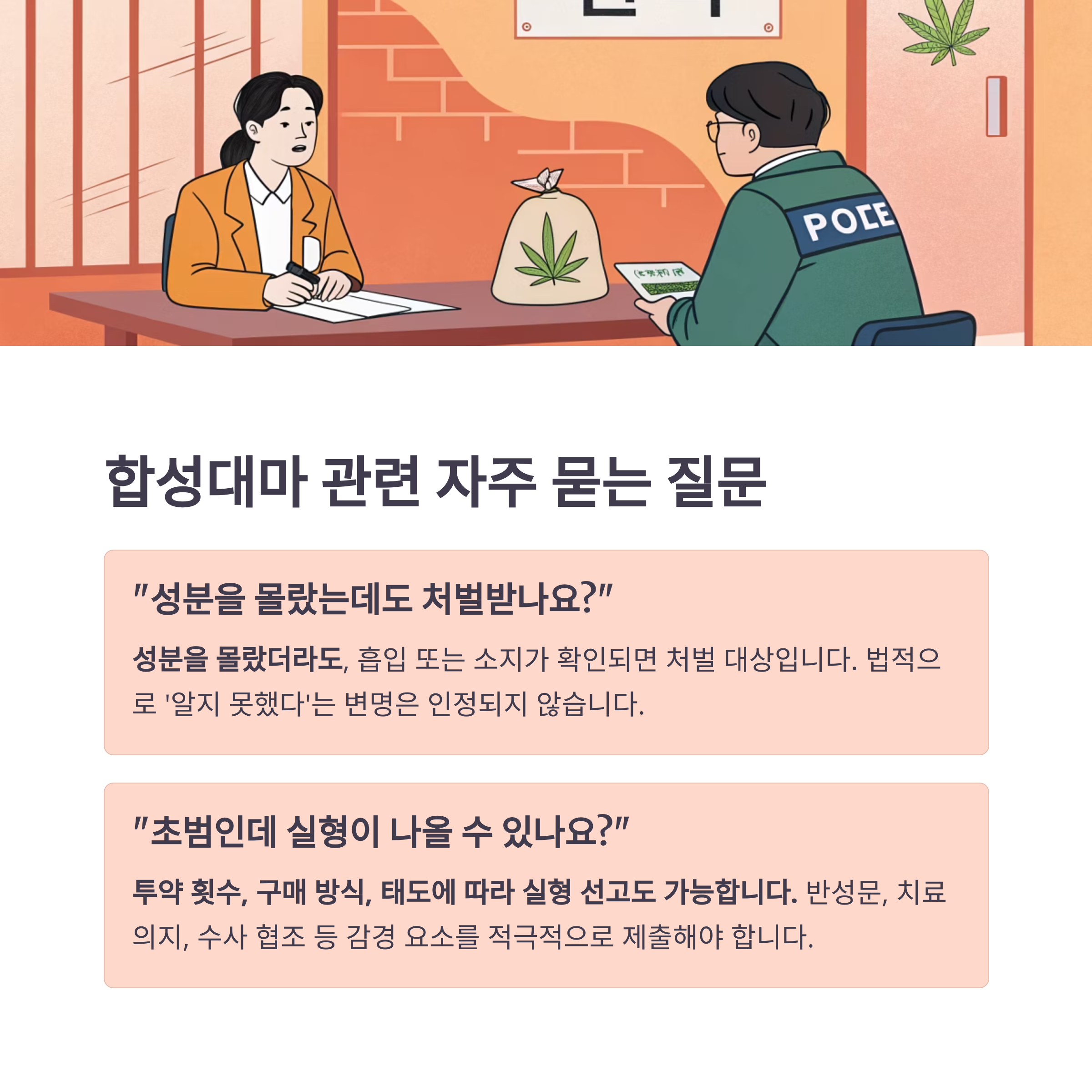 #합성대마투약 #마약류형사입건 #신종마약처벌 #형사처벌기준 #초범감형전략 #합성칸나비노이드