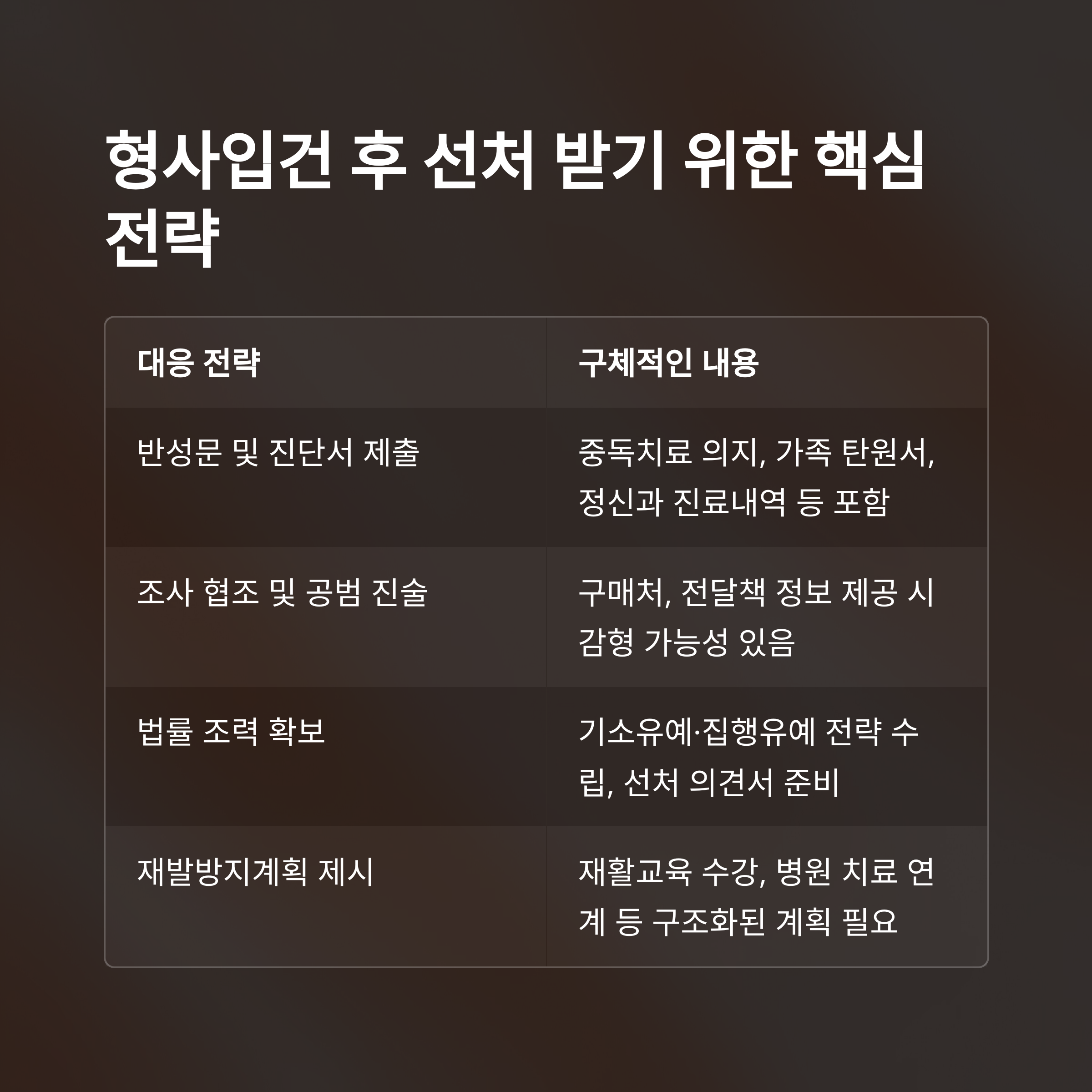 | 조사 협조 및 공범 진술 | 구매처, 전달책 정보 제공 시 감형 가능성 있음 |