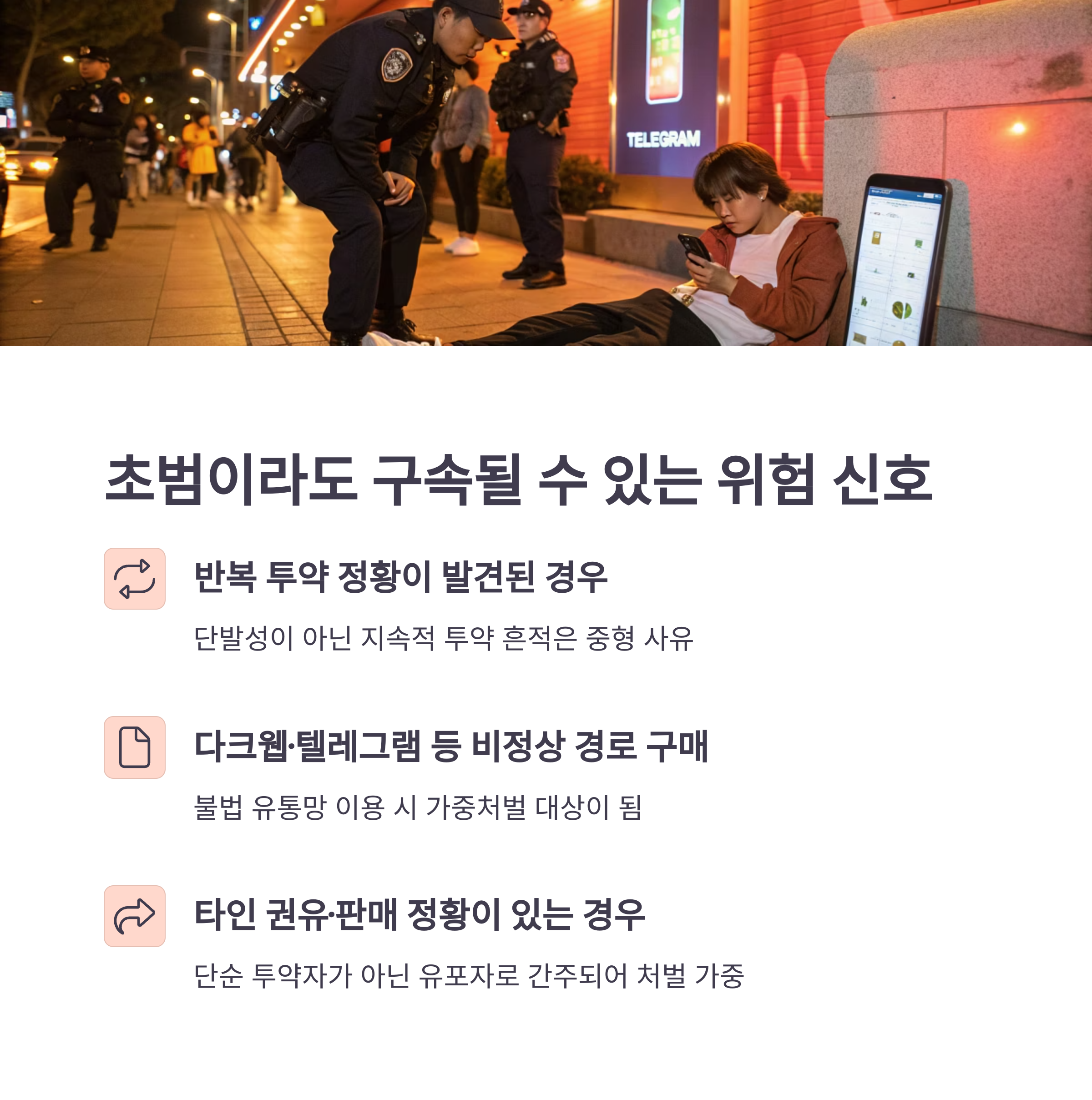 → 투약 횟수, 구매 방식, 태도에 따라 실형 선고도 가능합니다.
