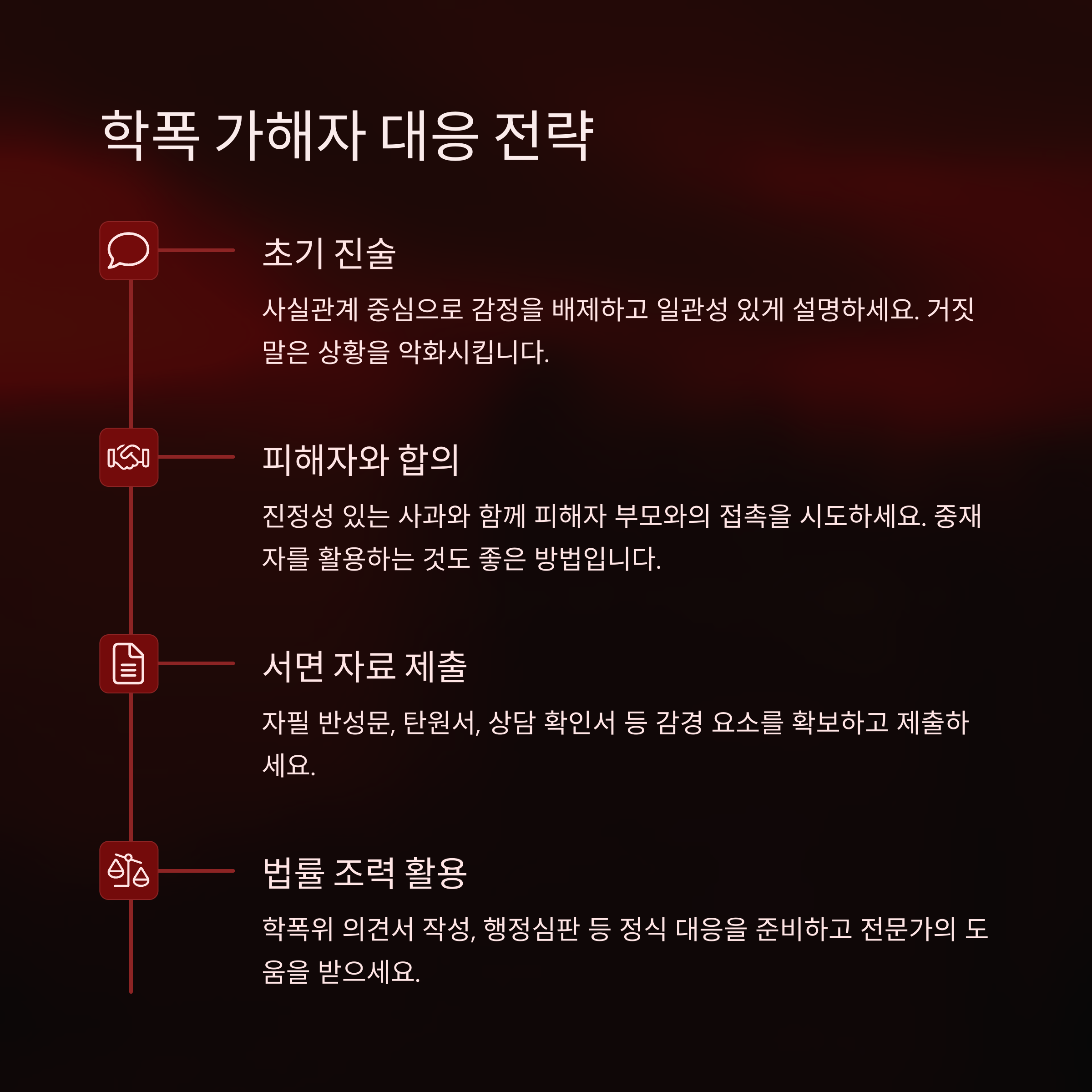 가해자 입장에서 최대한의 감경과 회복을 위한 최선의 대응 전략입니다.
