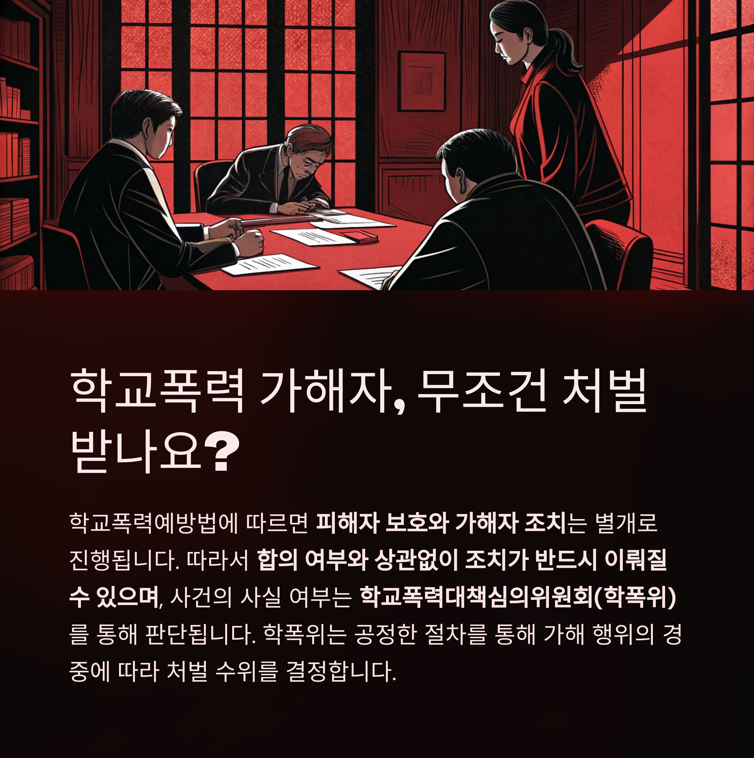 피해자와 합의해도 학교는 조치를 내릴 수 있습니다.