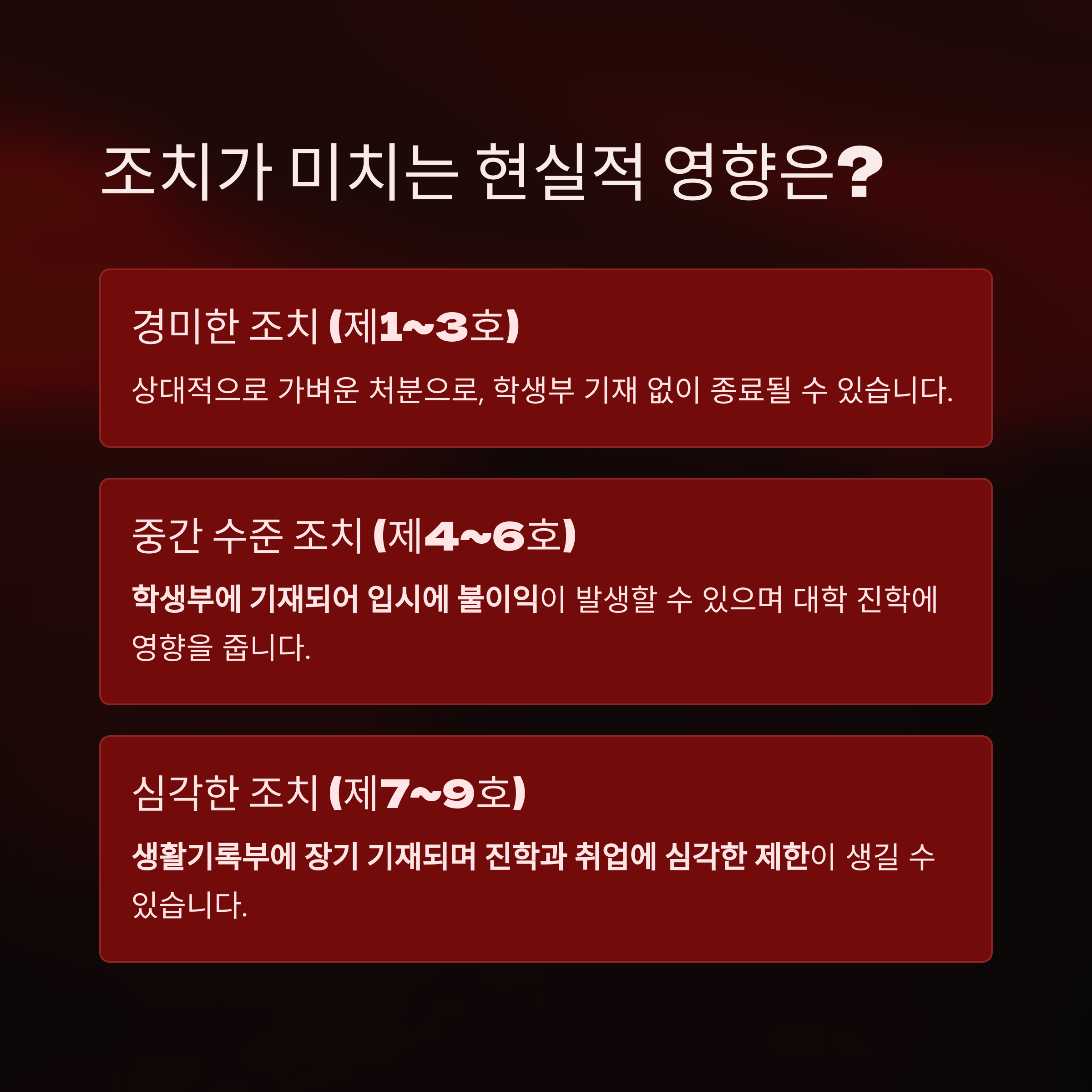 단순 훈계 수준을 넘어 학교 조치, 학생부 기재, 형사처벌, 민사배상까지