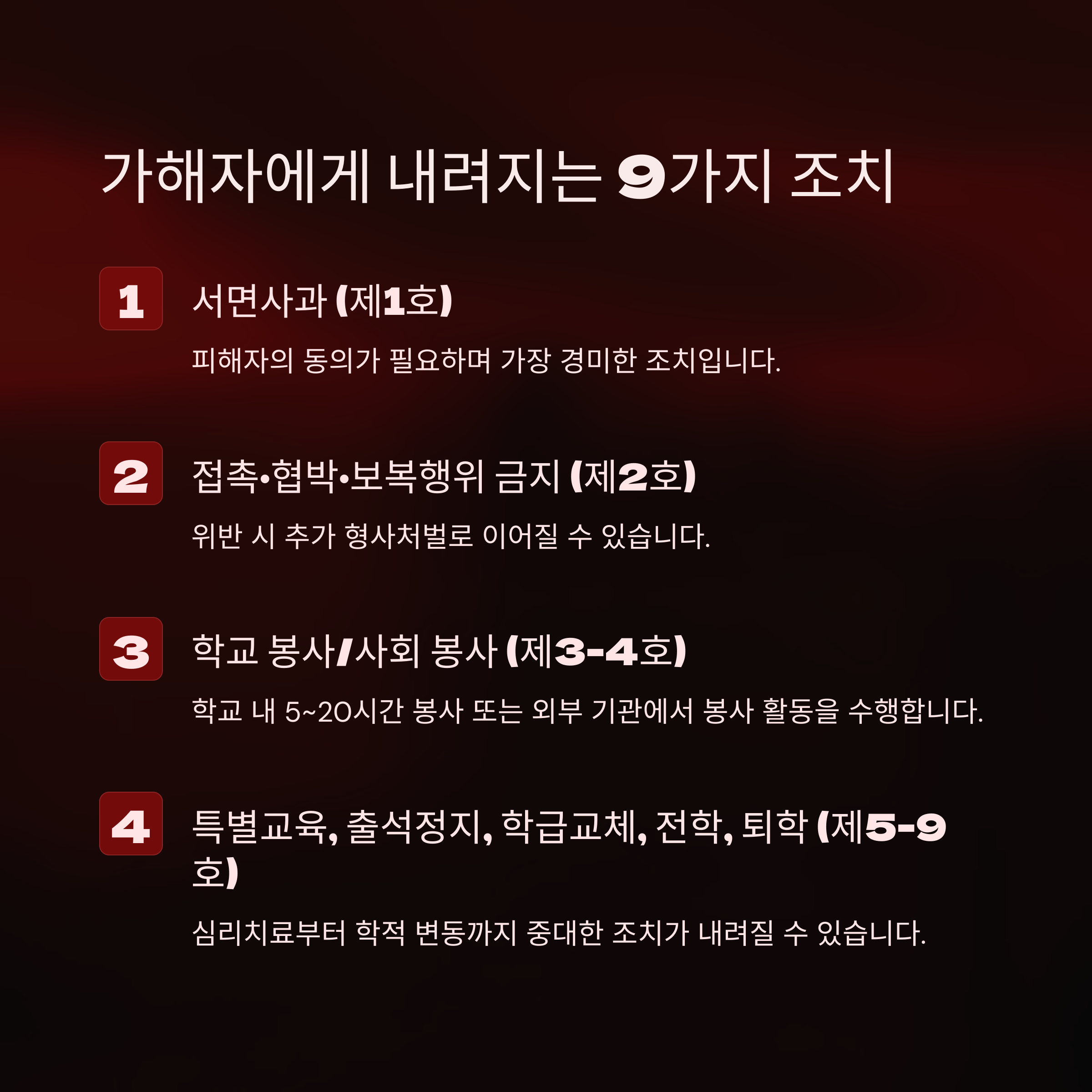 | 학교 조치 | 학폭위 조사 → 조치결정 |