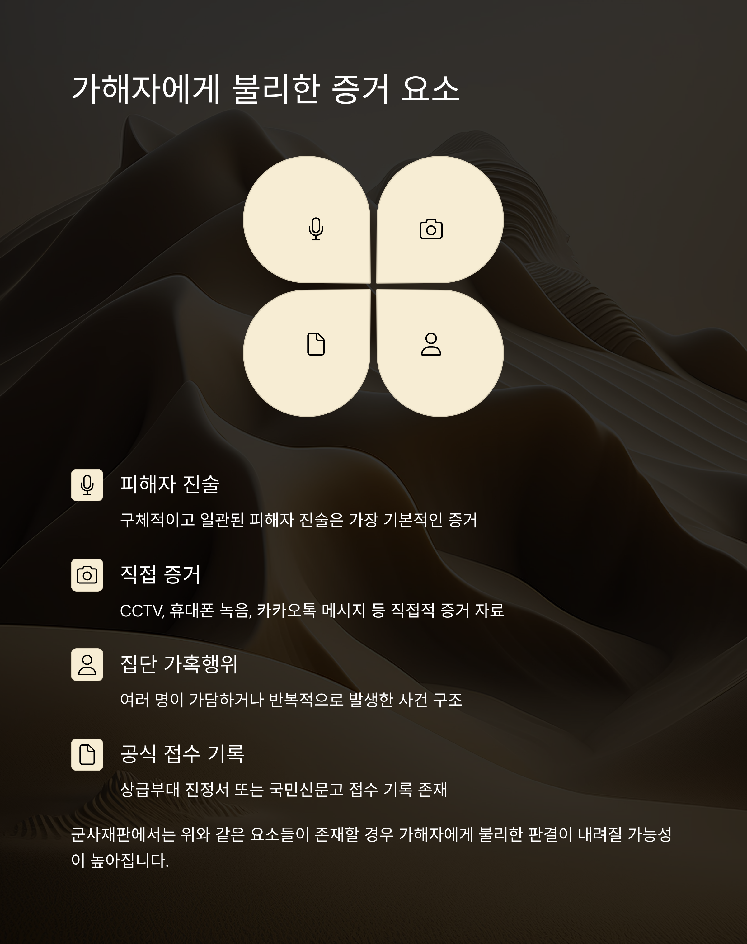 #군대가혹행위 #군형법64조 #군사재판절차 #군폭력처벌 #집행유예전략 #병사법률상담