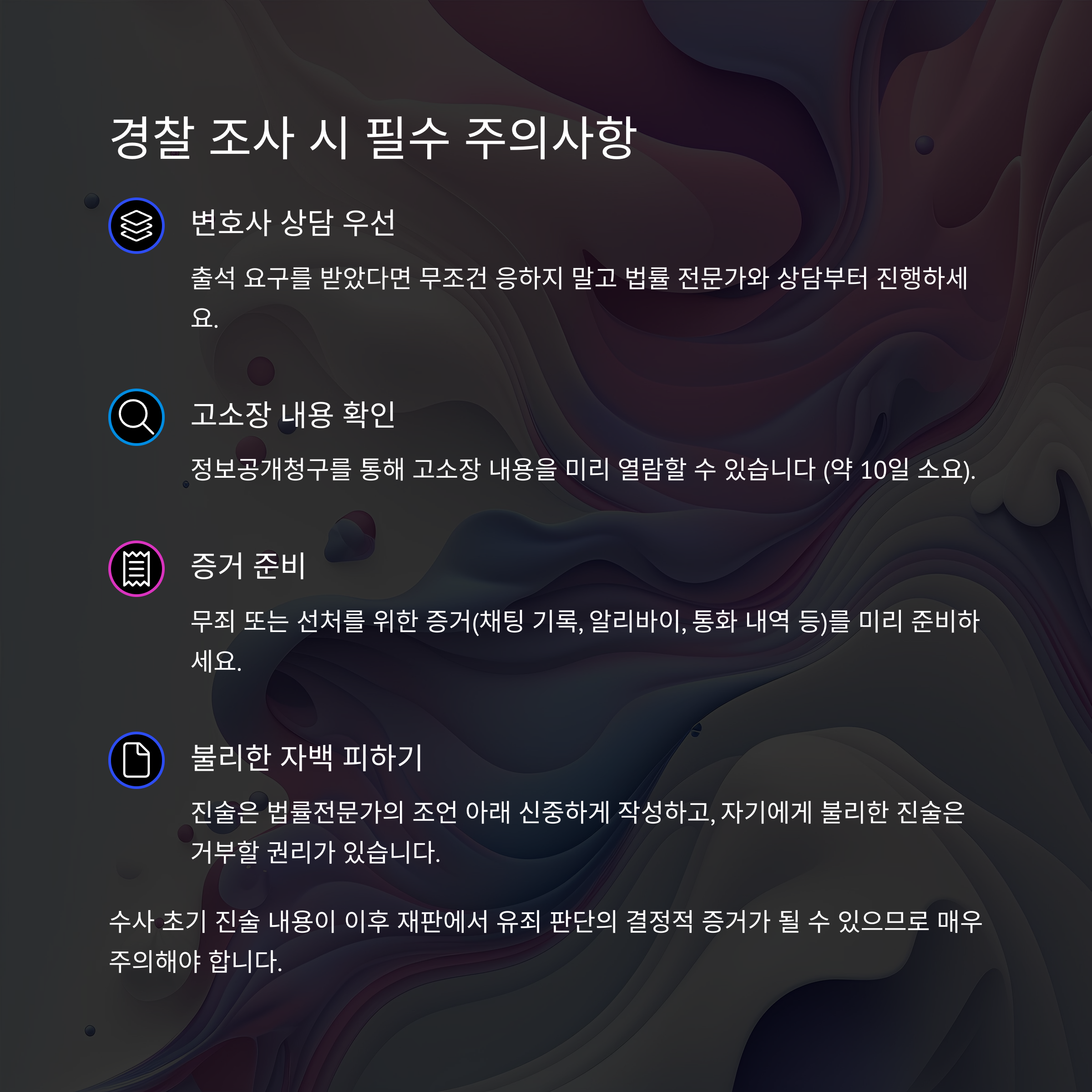 - 무죄 또는 선처를 위한 증거 준비: 채팅 기록, 알리바이, 통화 내역 등