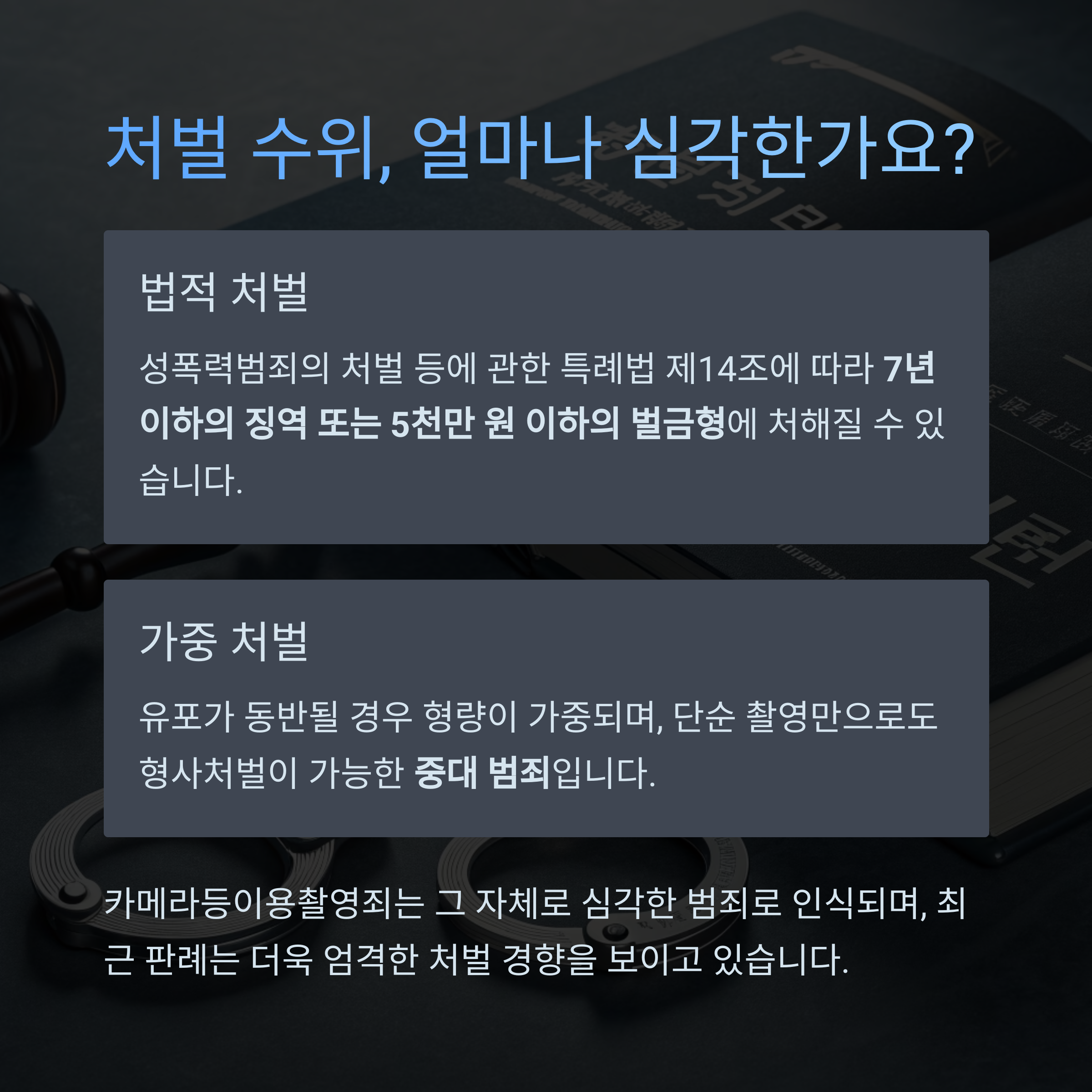 단순 촬영만으로도 형사처벌이 가능한 중대 범죄입니다.
