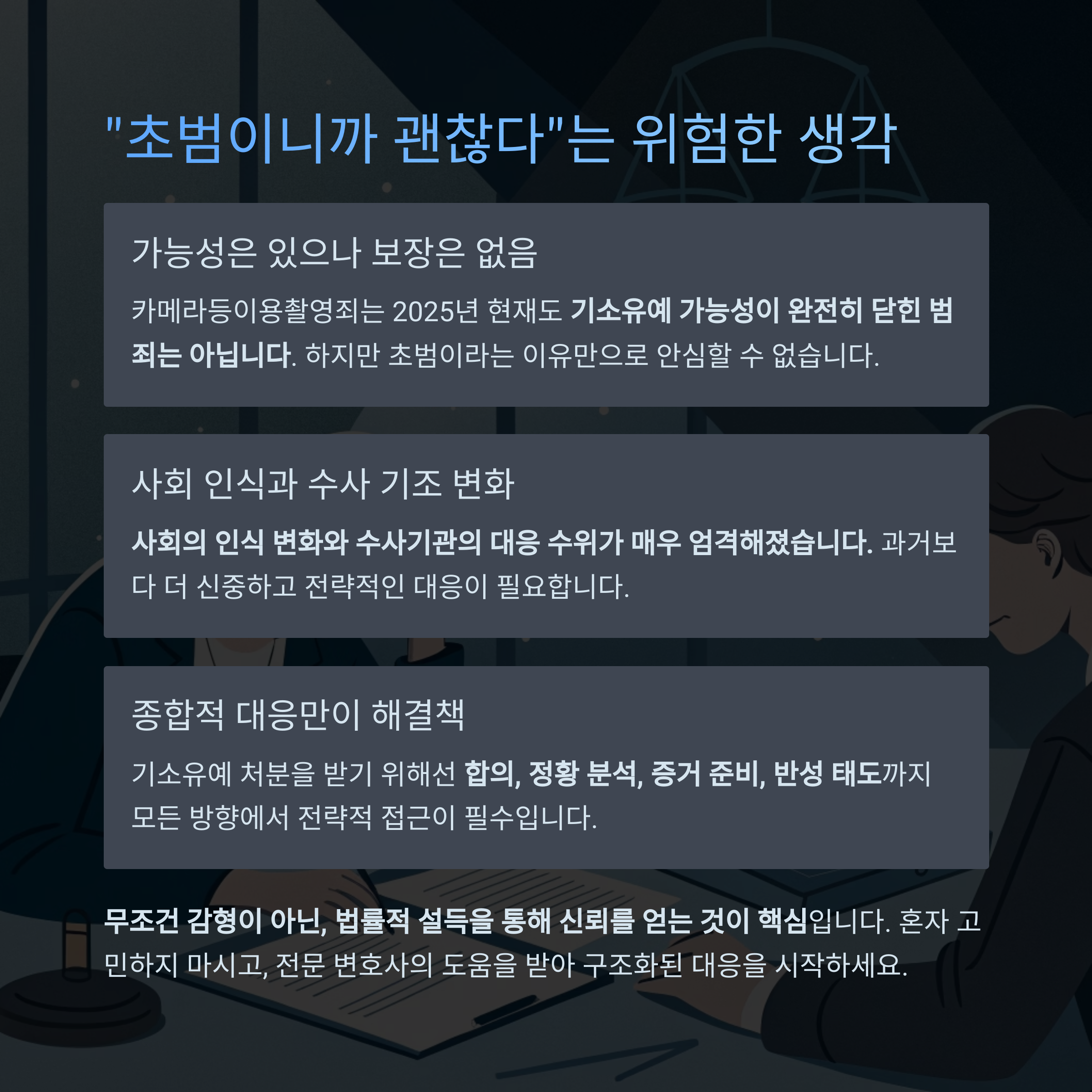 카메라등이용촬영죄는 2025년 현재도 기소유예 가능성이 완전히 닫힌 범죄는 아닙니다.