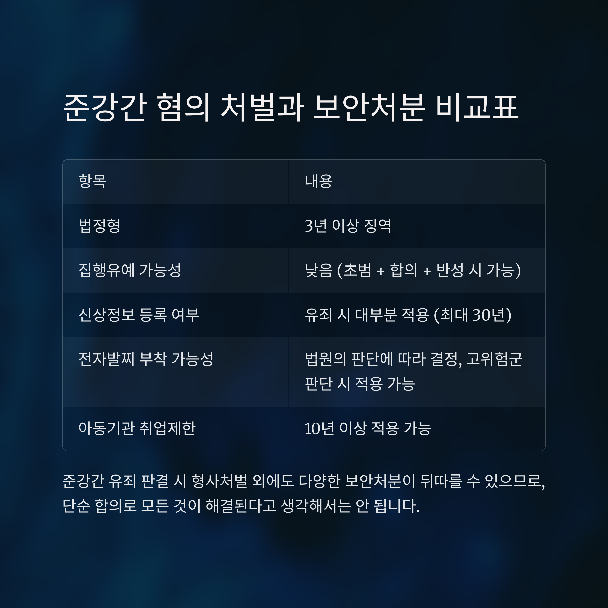 | 추가처분 | 신상정보 등록, 전자발찌, 취업제한 등 병과 가능 |