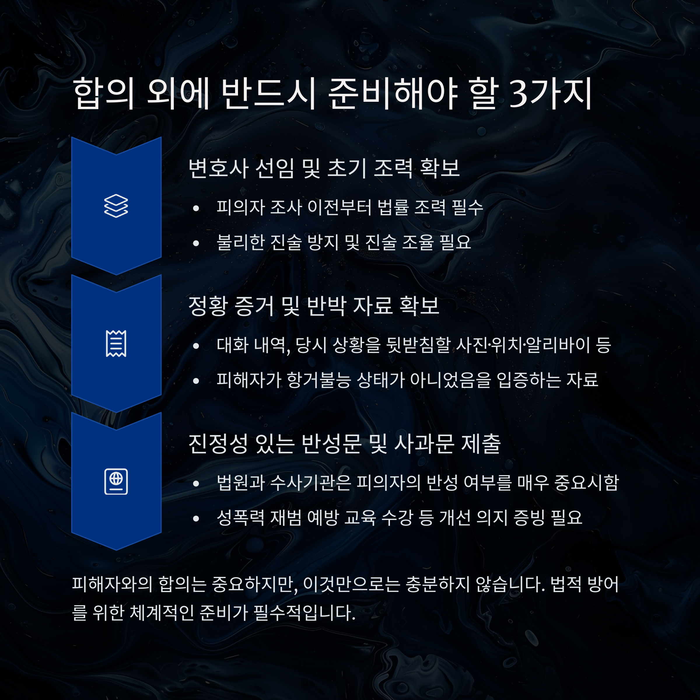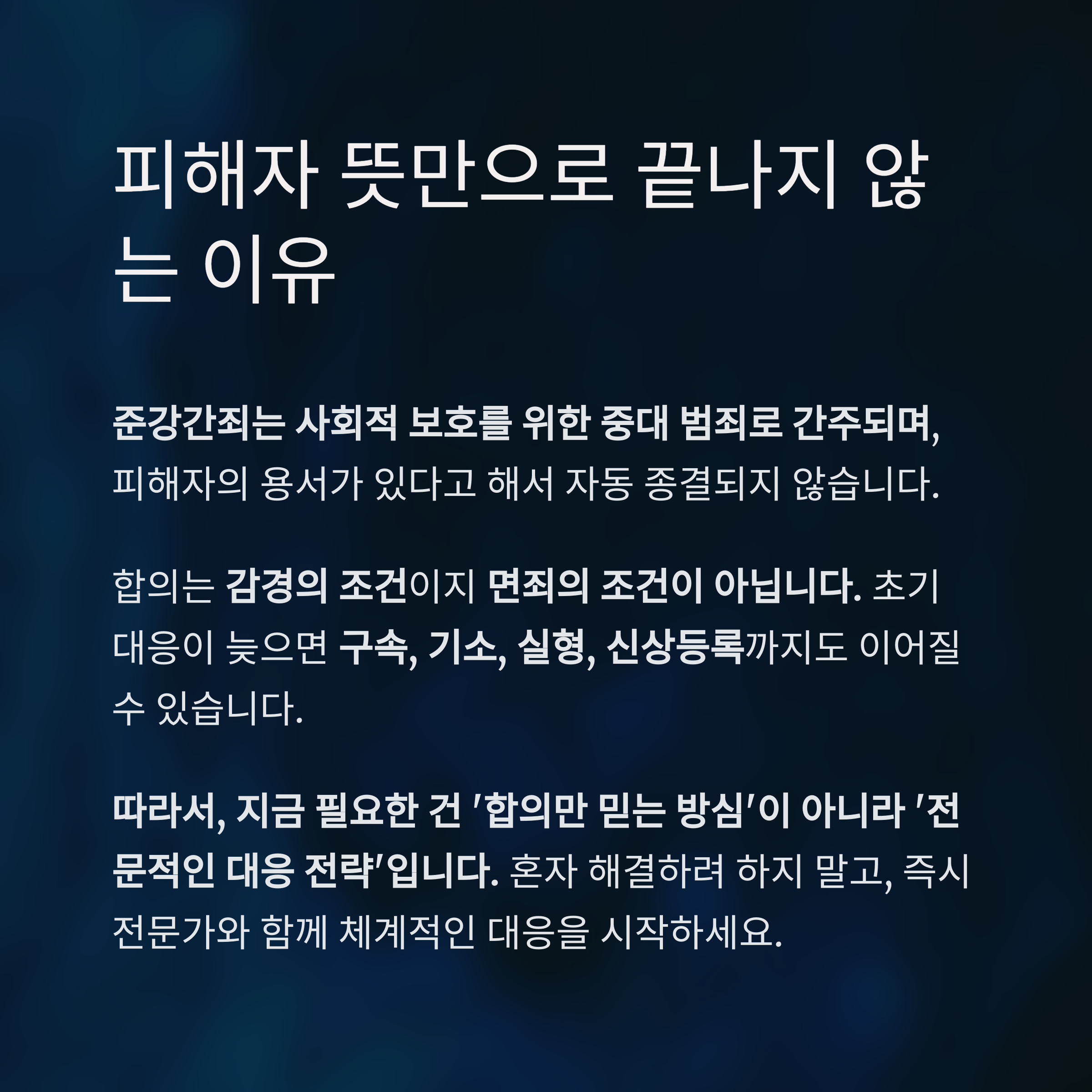 따라서, 지금 필요한 건 ‘합의만 믿는 방심’이 아니라 ‘전문적인 대응 전략’입니다.