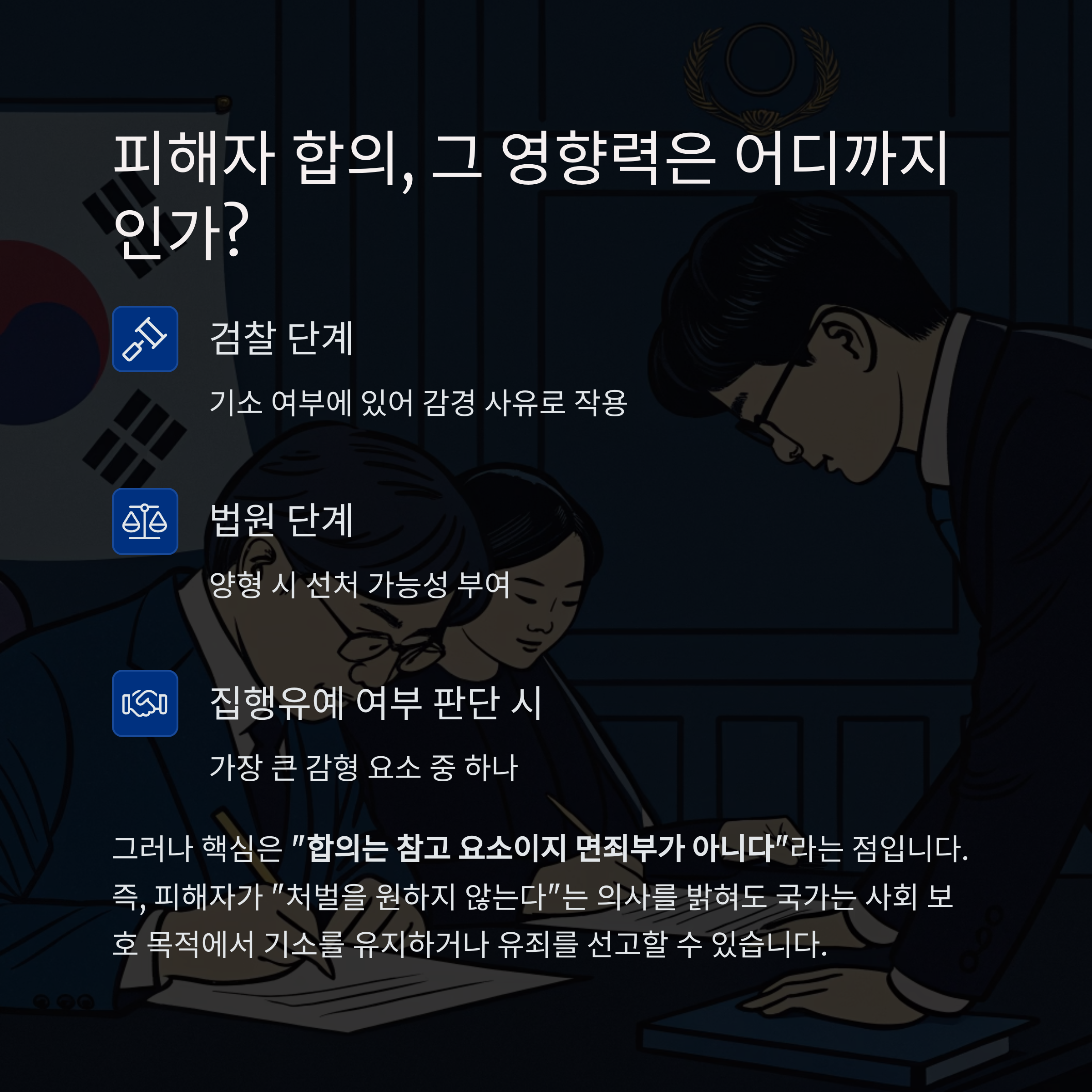 그러나 핵심은 **"합의는 참고 요소이지 면죄부가 아니다"**라는 점입니다.