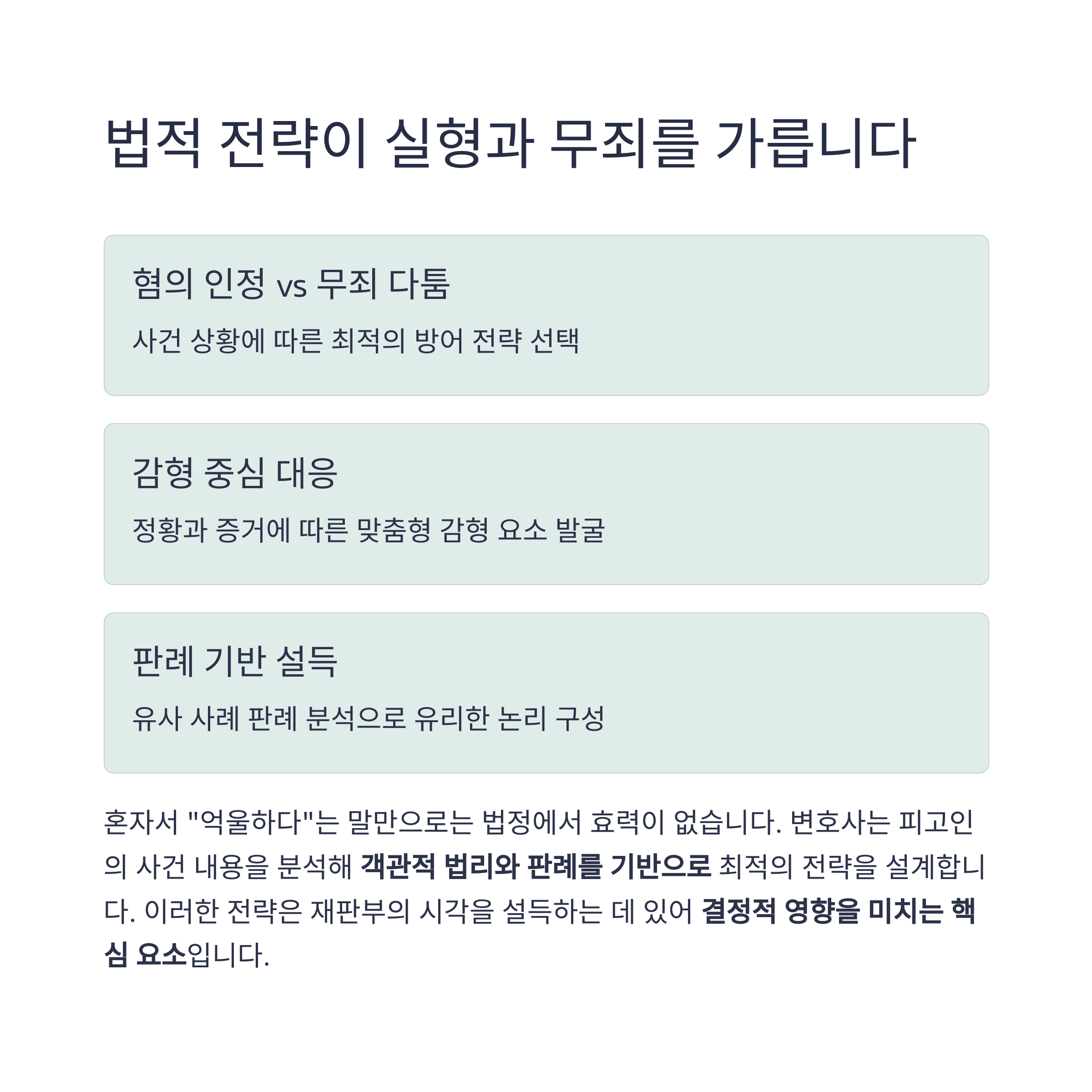 - 혐의 인정 전략 vs 무죄 다툼 전략