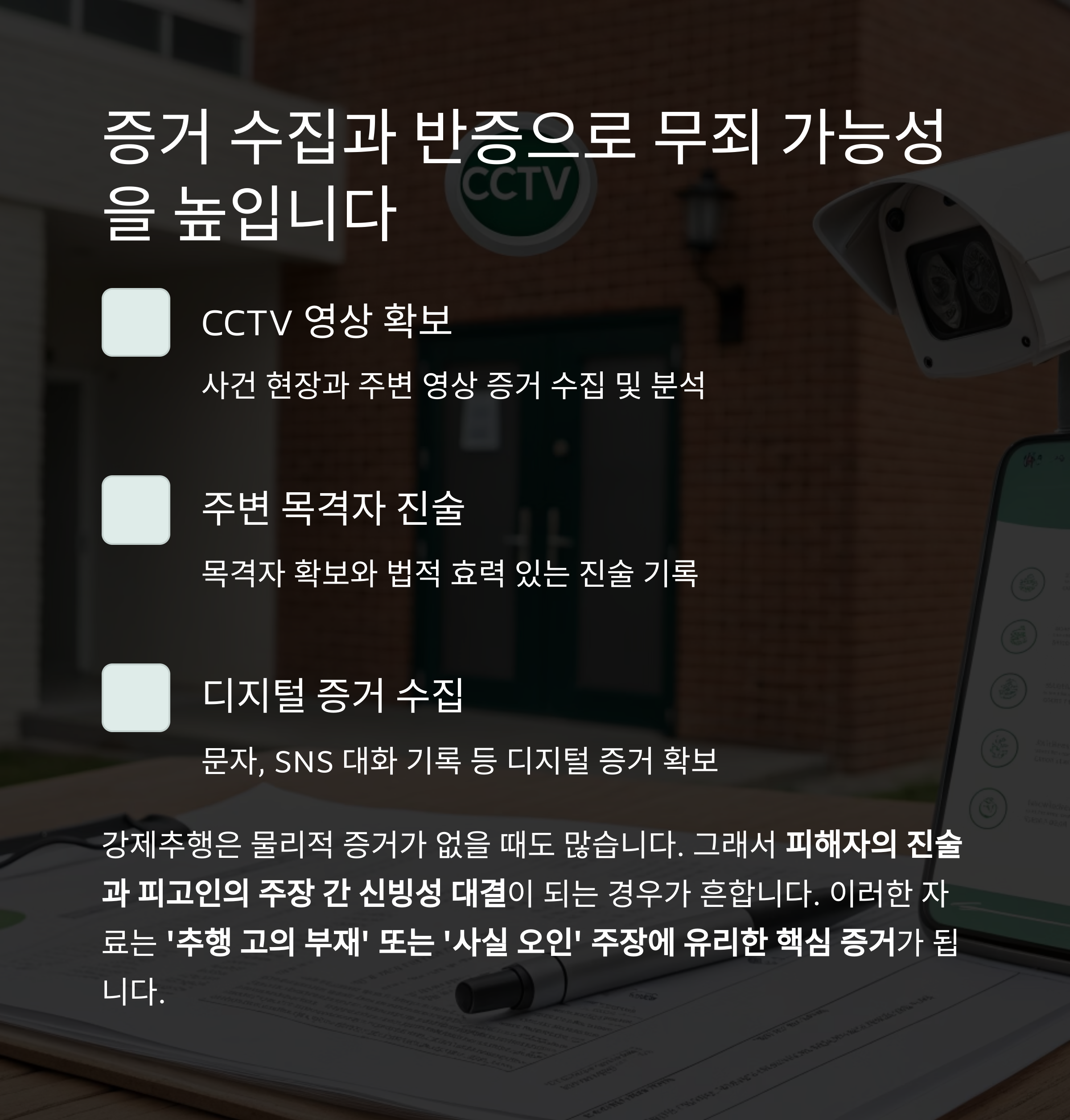 이러한 자료는 ‘추행 고의 부재’ 또는 ‘사실 오인’ 주장에 유리한 핵심 증거가 됩니다.