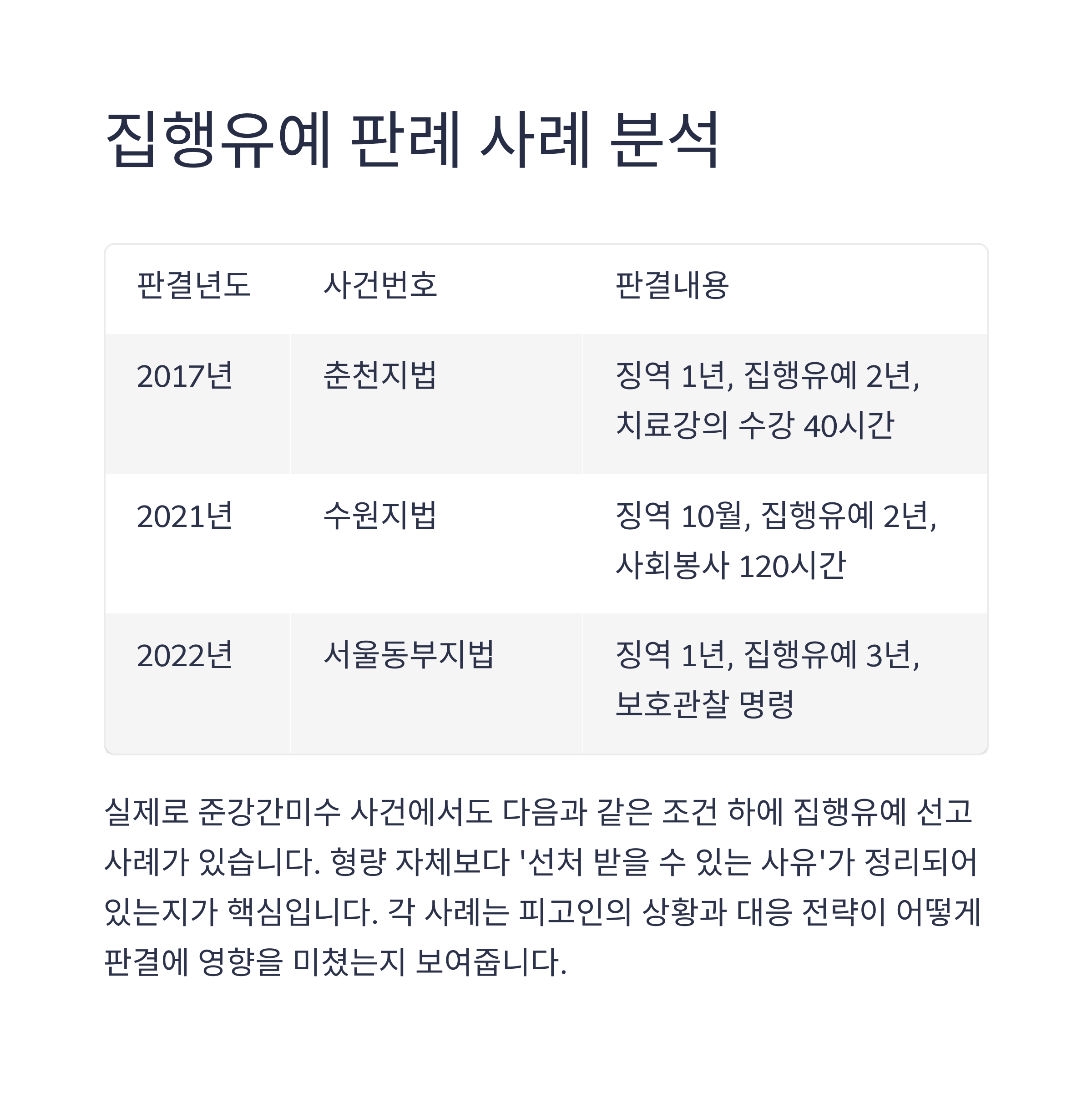 다음과 같은 조건 하에 집행유예 선고 사례가 있습니다