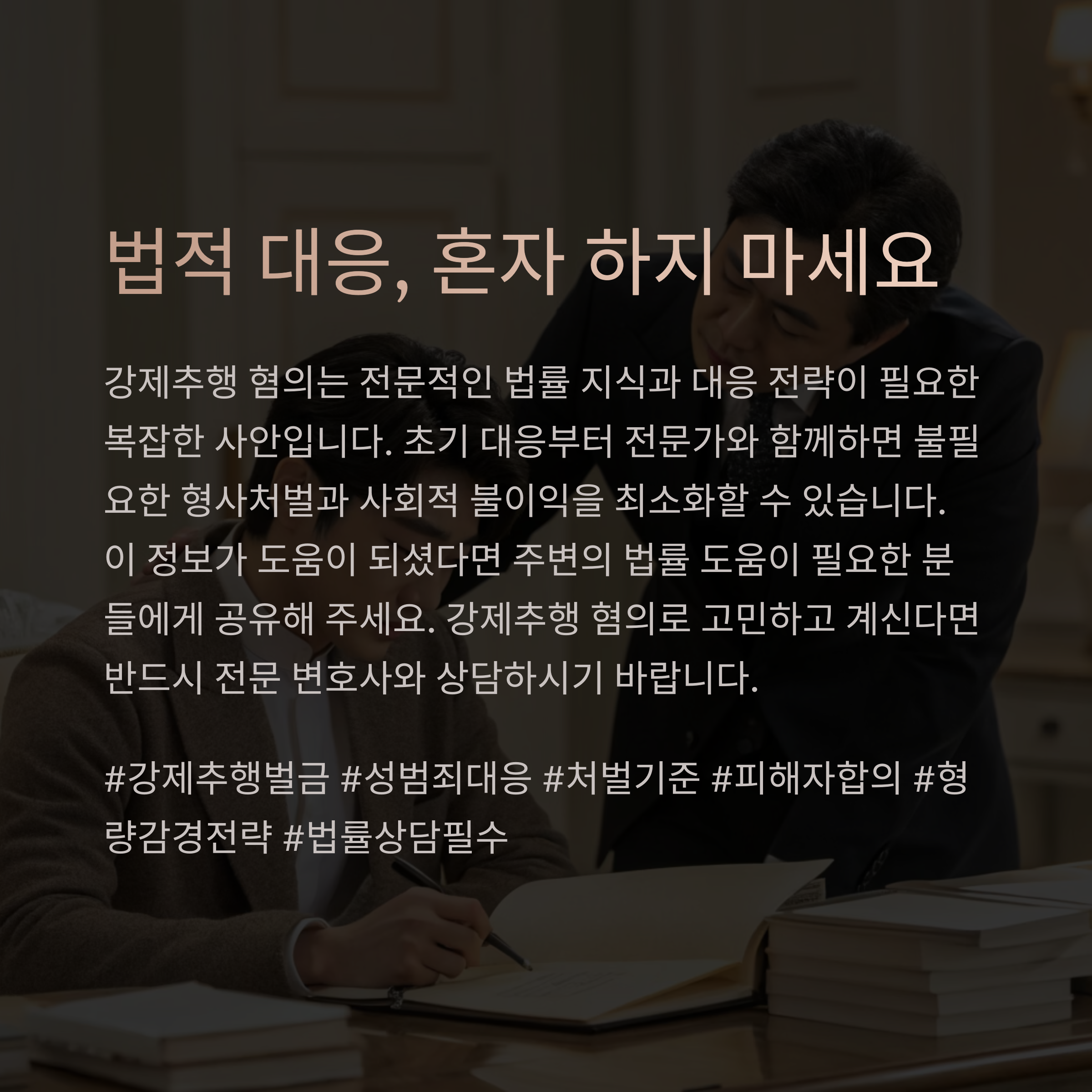 #강제추행벌금 #성범죄대응 #처벌기준 #피해자합의 #형량감경전략 #법률상담필수