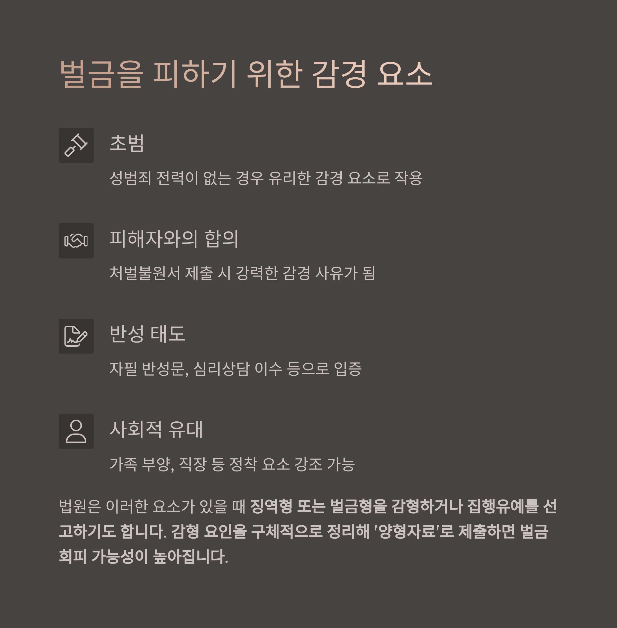 감형 요인을 구체적으로 정리해 ‘양형자료’로 제출하면 벌금 회피 가능성이 높아집니다