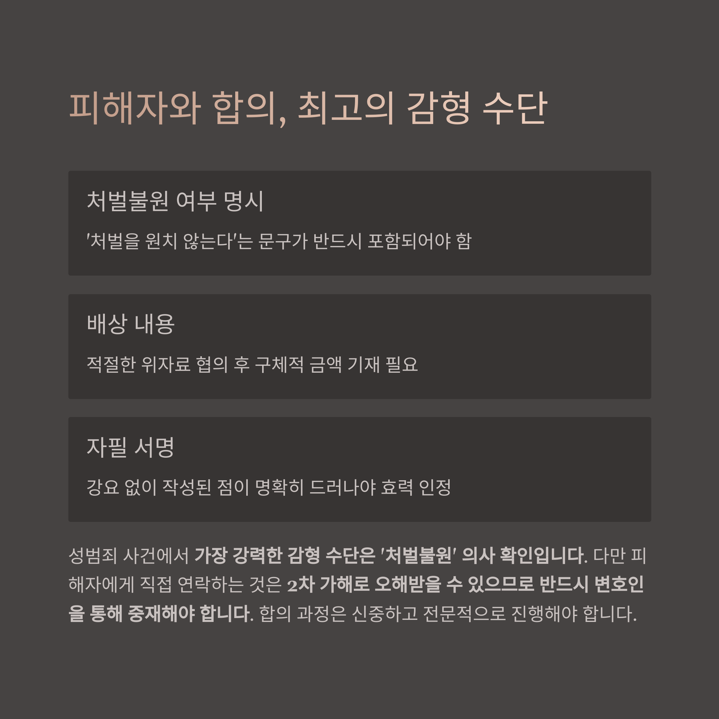 성범죄 사건에서 가장 강력한 감형 수단은 ‘처벌불원’ 의사 확인입니다