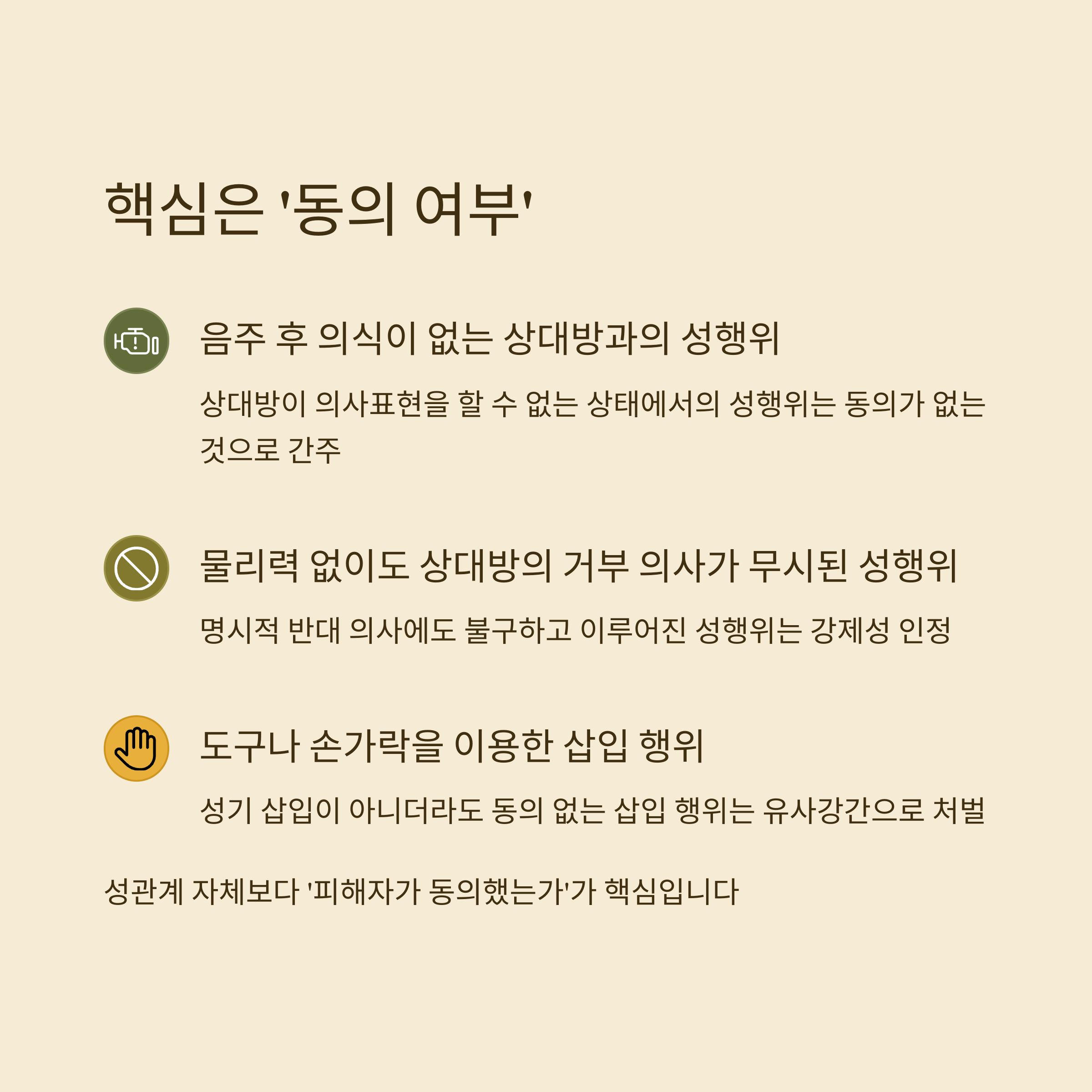 성관계 자체보다 ‘피해자가 동의했는가’가 핵심입니다