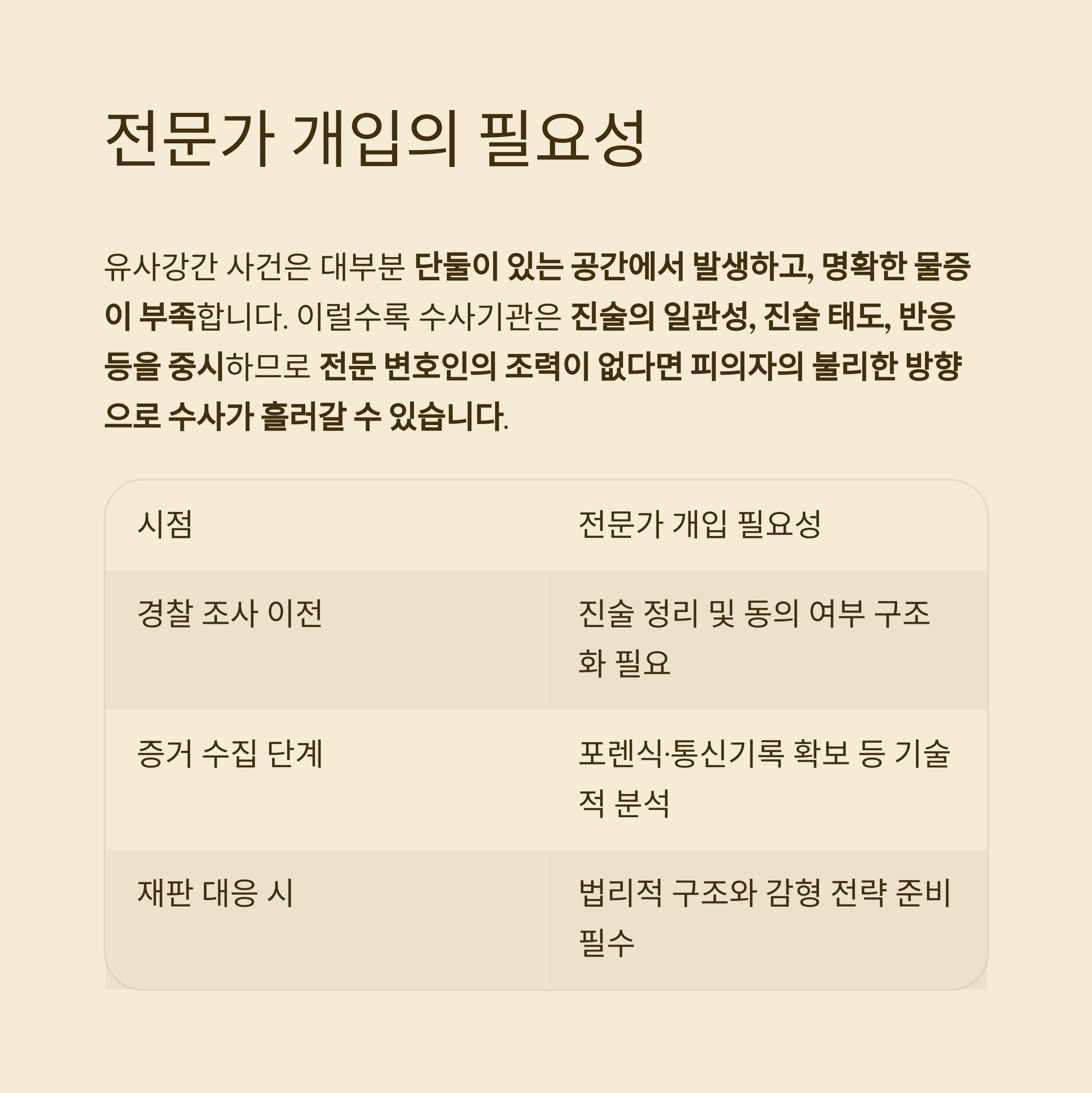 | 경찰 조사 이전 | 진술 정리 및 동의 여부 구조화 필요 |