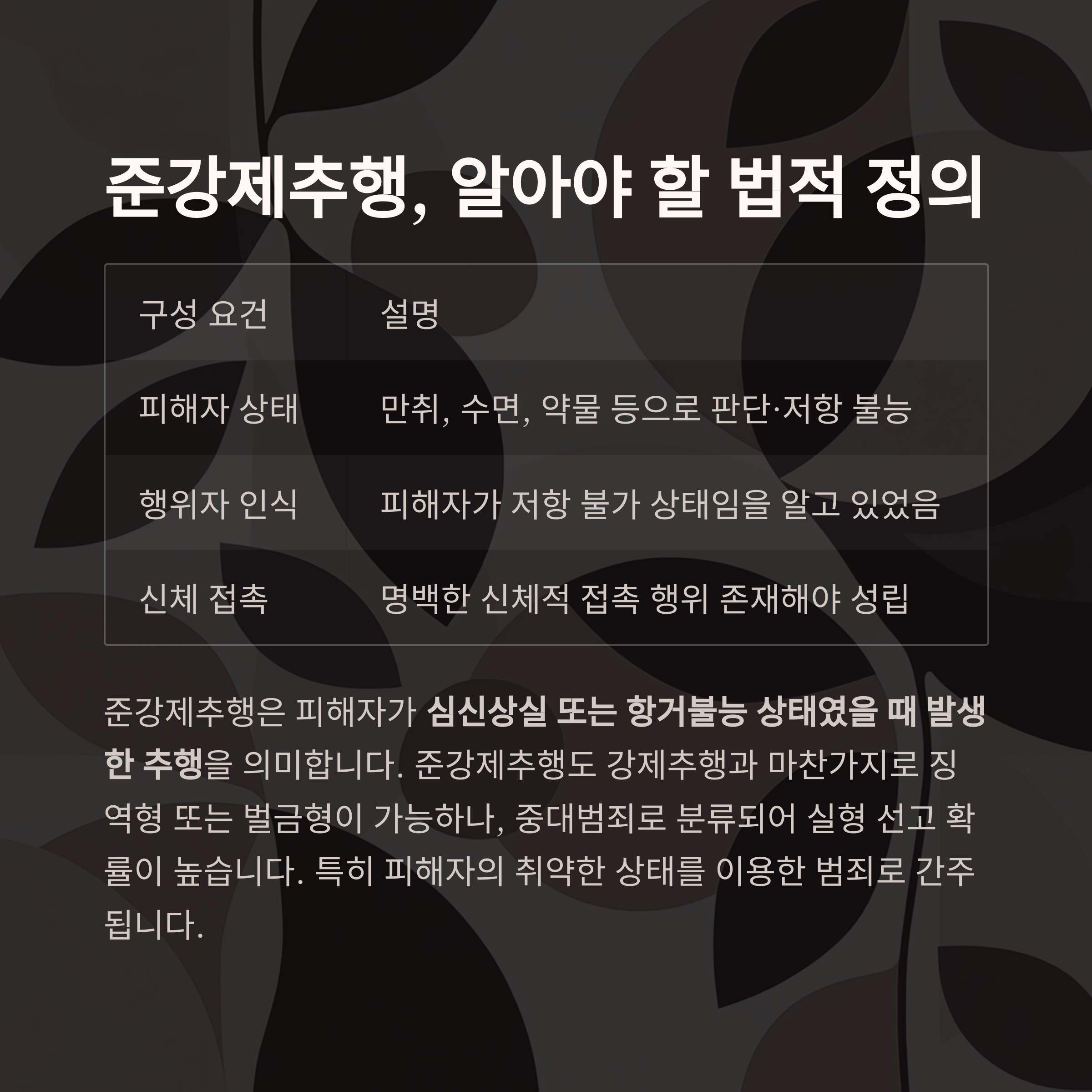 #음주성추행 #준강제추행 #2025성범죄법 #가중처벌기준 #성범죄피해자대응 #음주책임강화