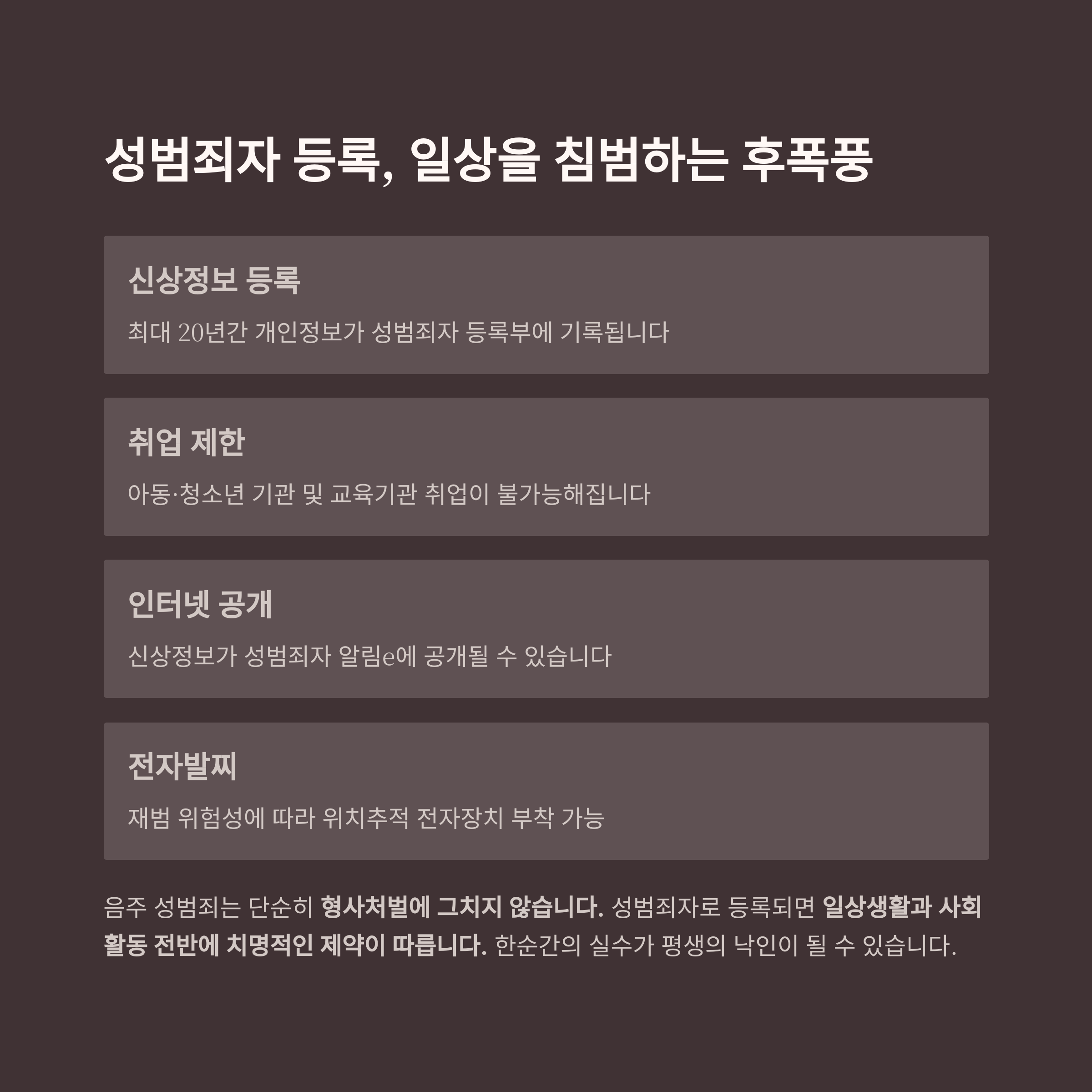 음주 성범죄는 단순히 형사처벌에 그치지 않습니다