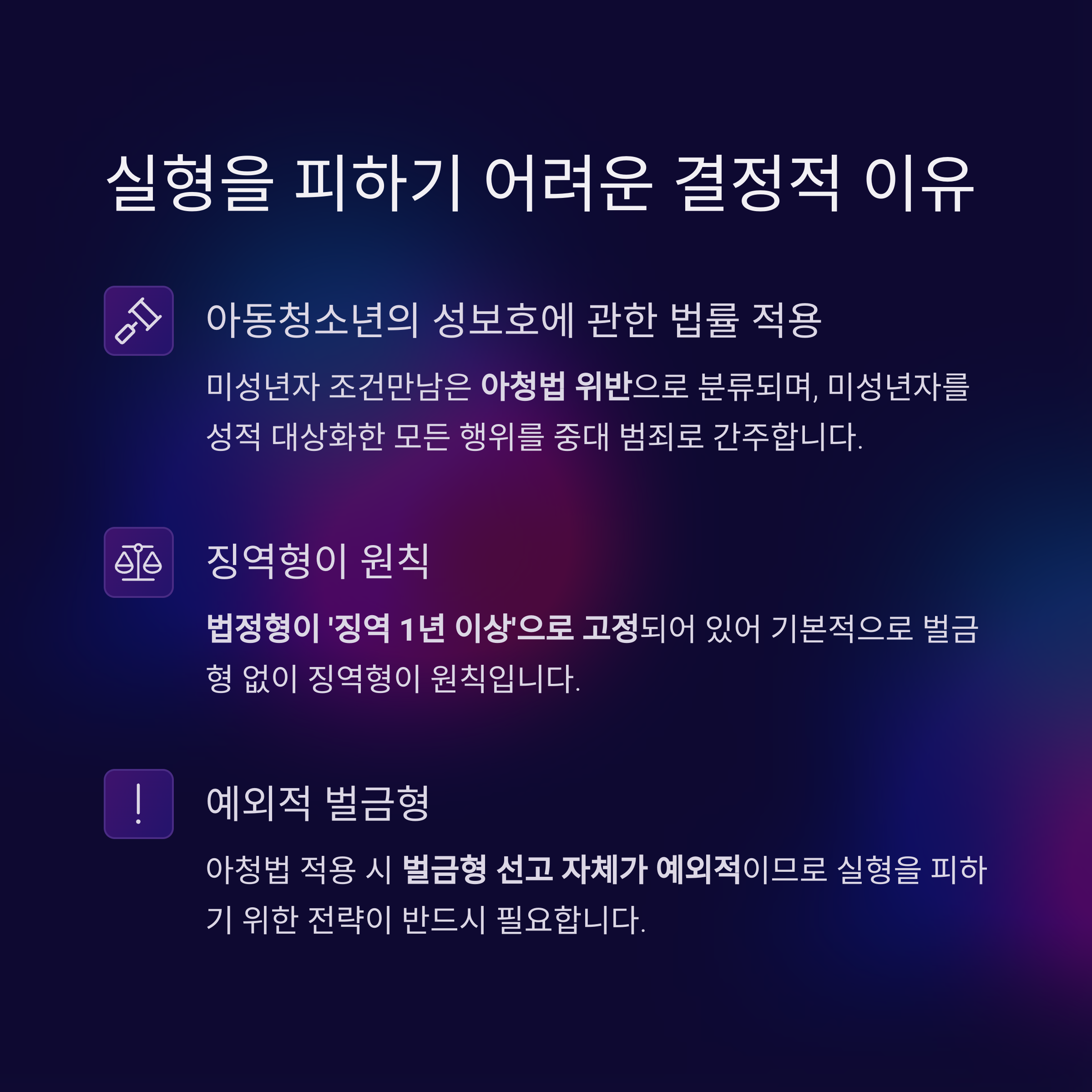 미성년자 조건만남 혐의, 왜 실형을 피하기 어려운가?