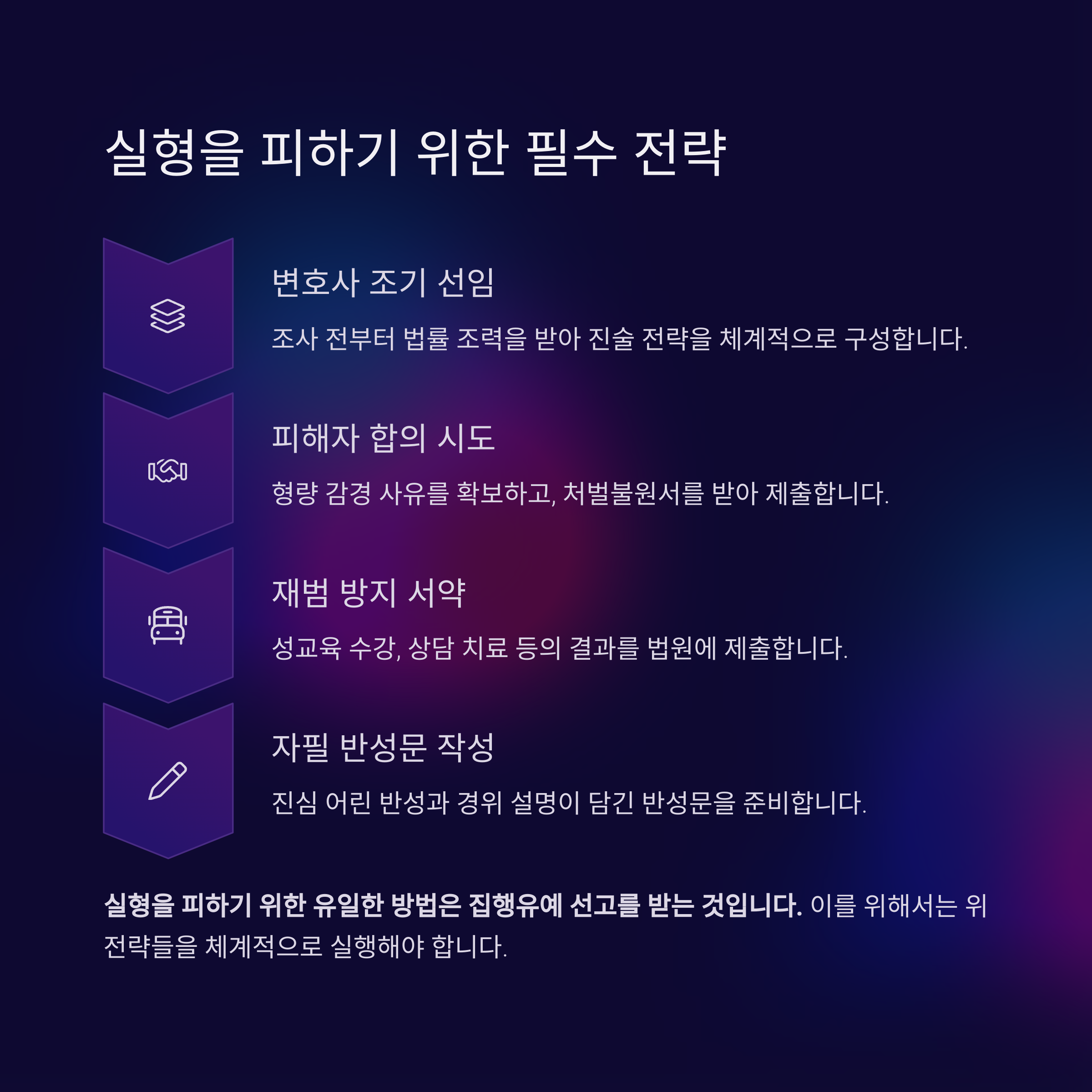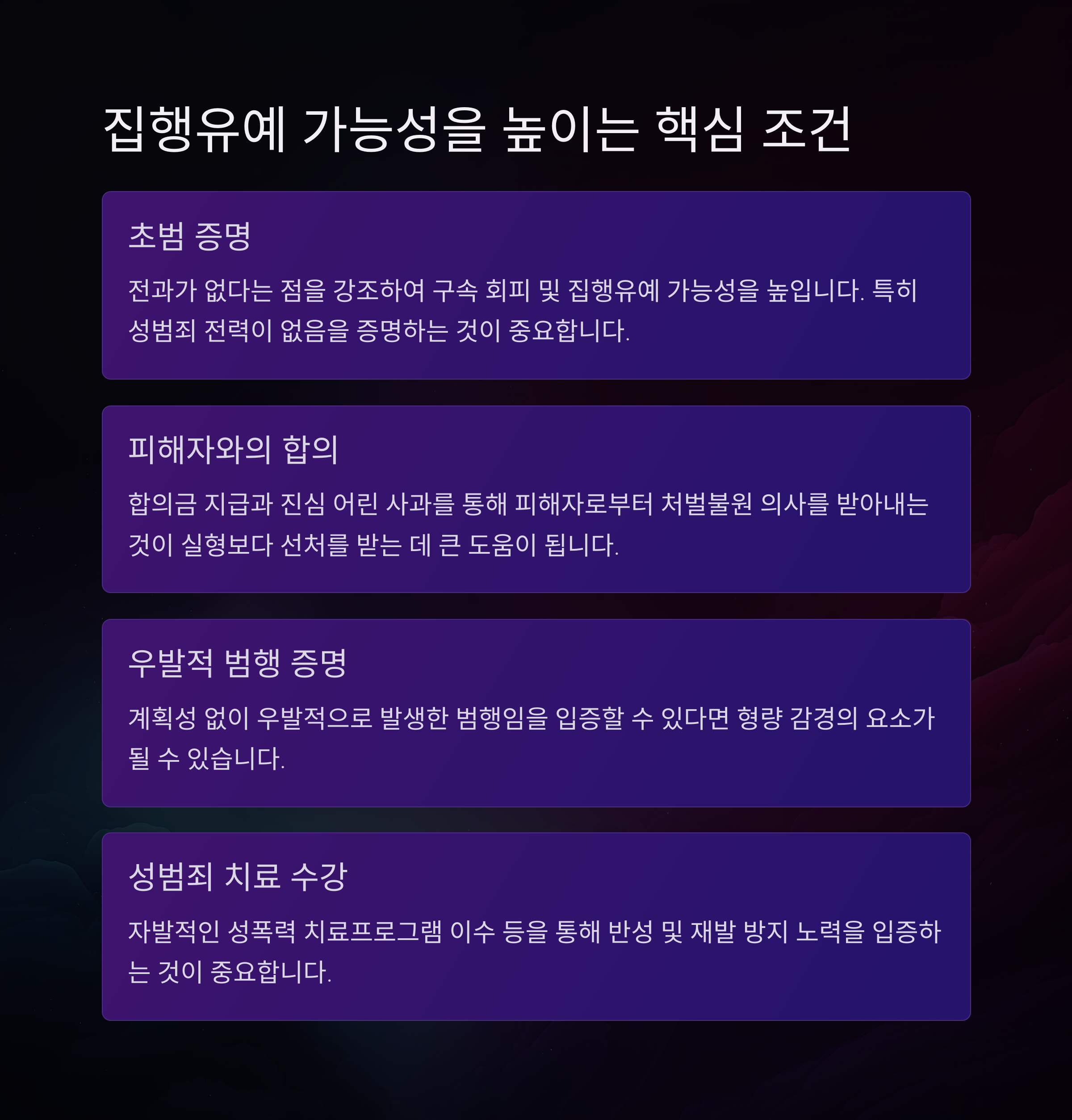 | 피해자와의 합의 | 실형보다 선처 유도 가능 |