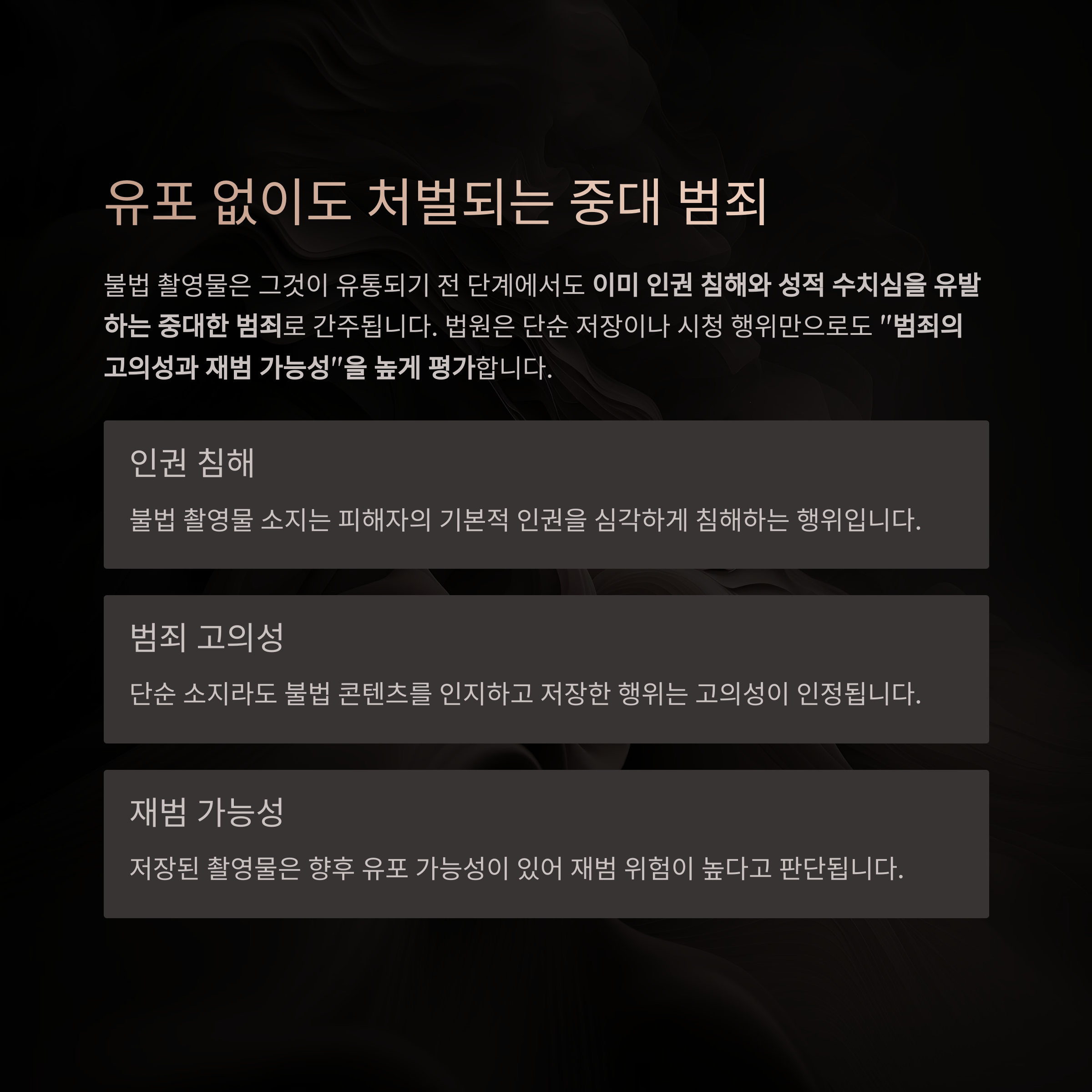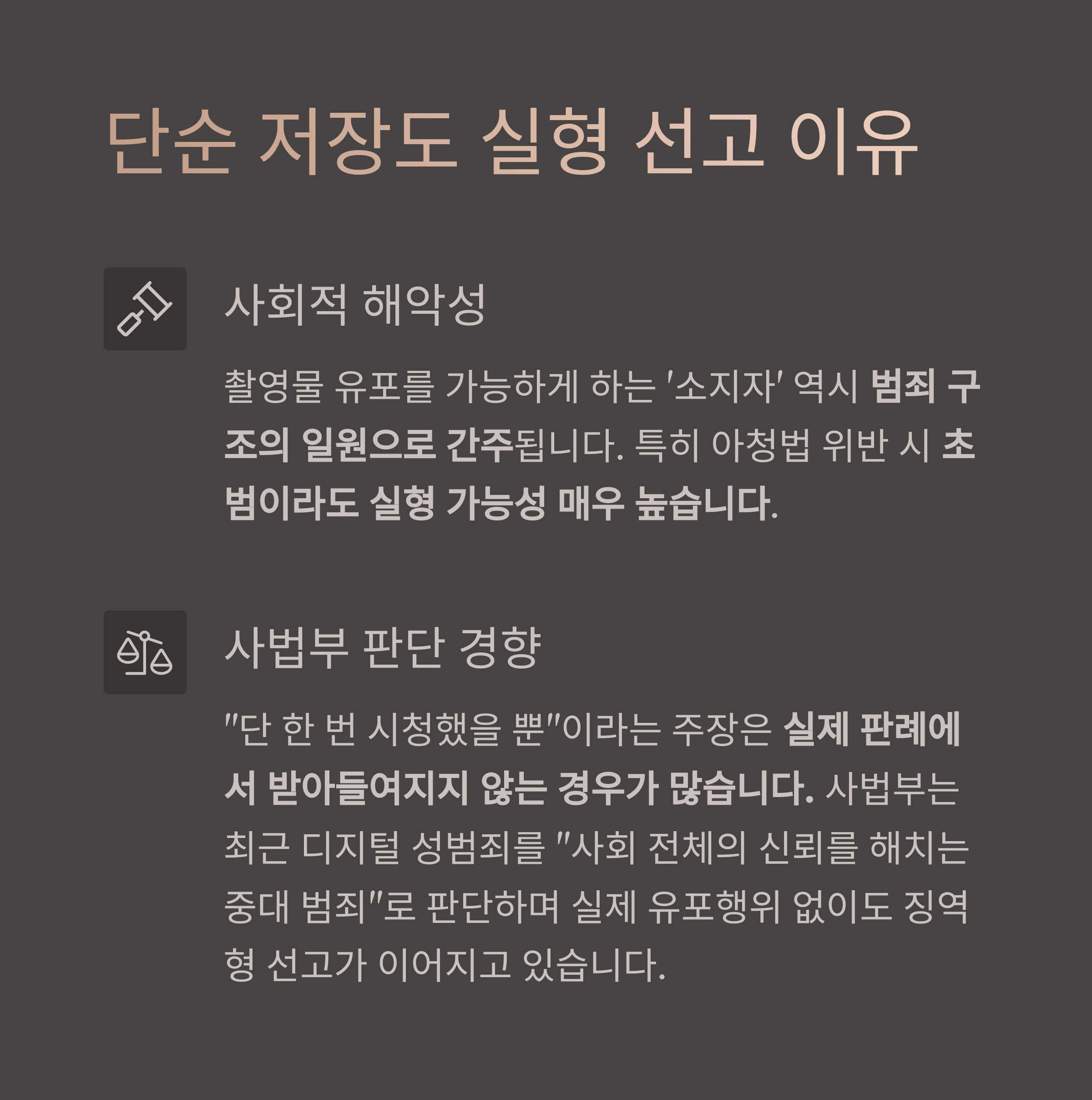 법원은 단순 저장이나 시청 행위만으로도 "범죄의 고의성과 재범 가능성"을 높게 평가합니다.