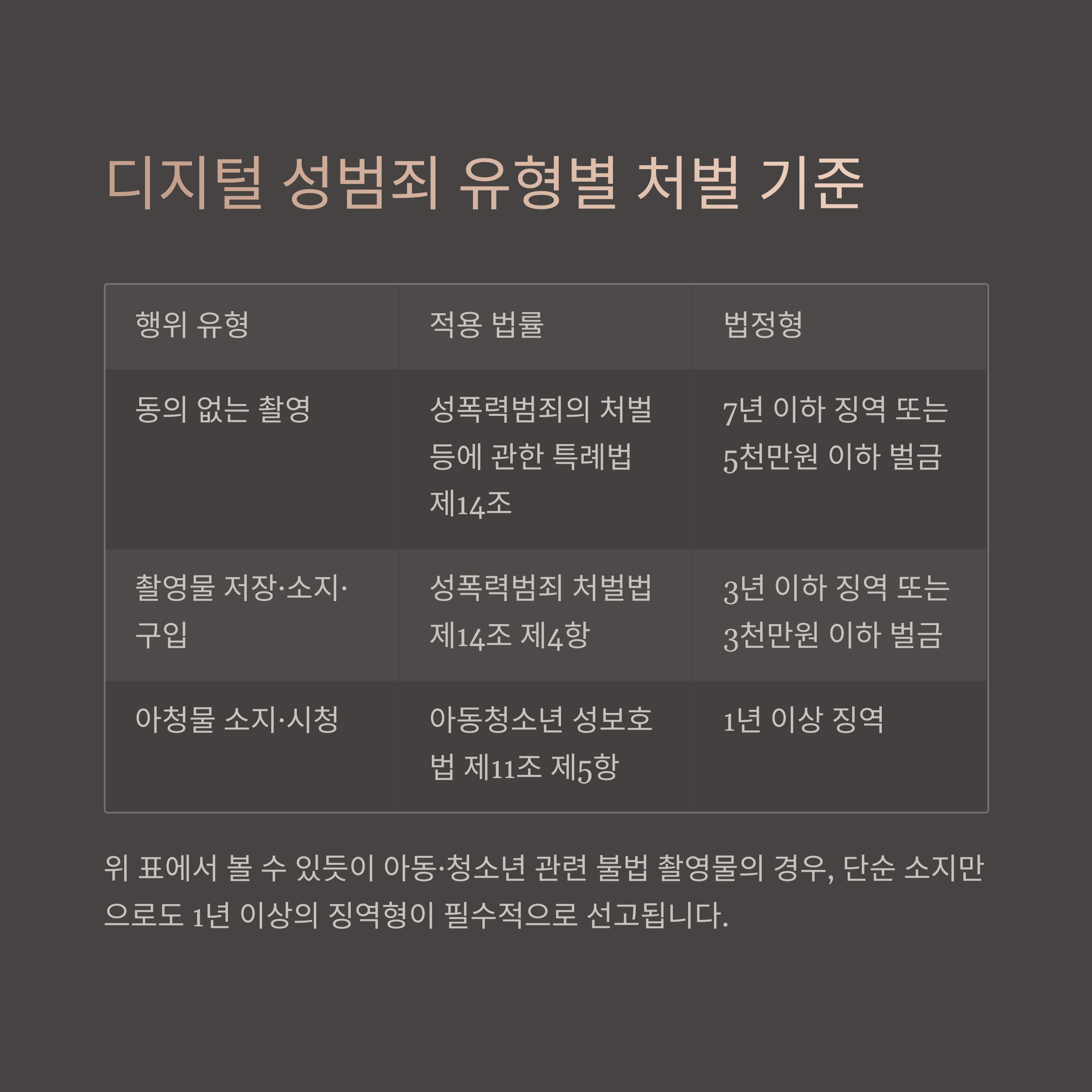 #디지털성범죄 #불법촬영처벌 #촬영물소지징역 #아청법처벌기준 #디지털포렌식조사 #유포전단계처벌