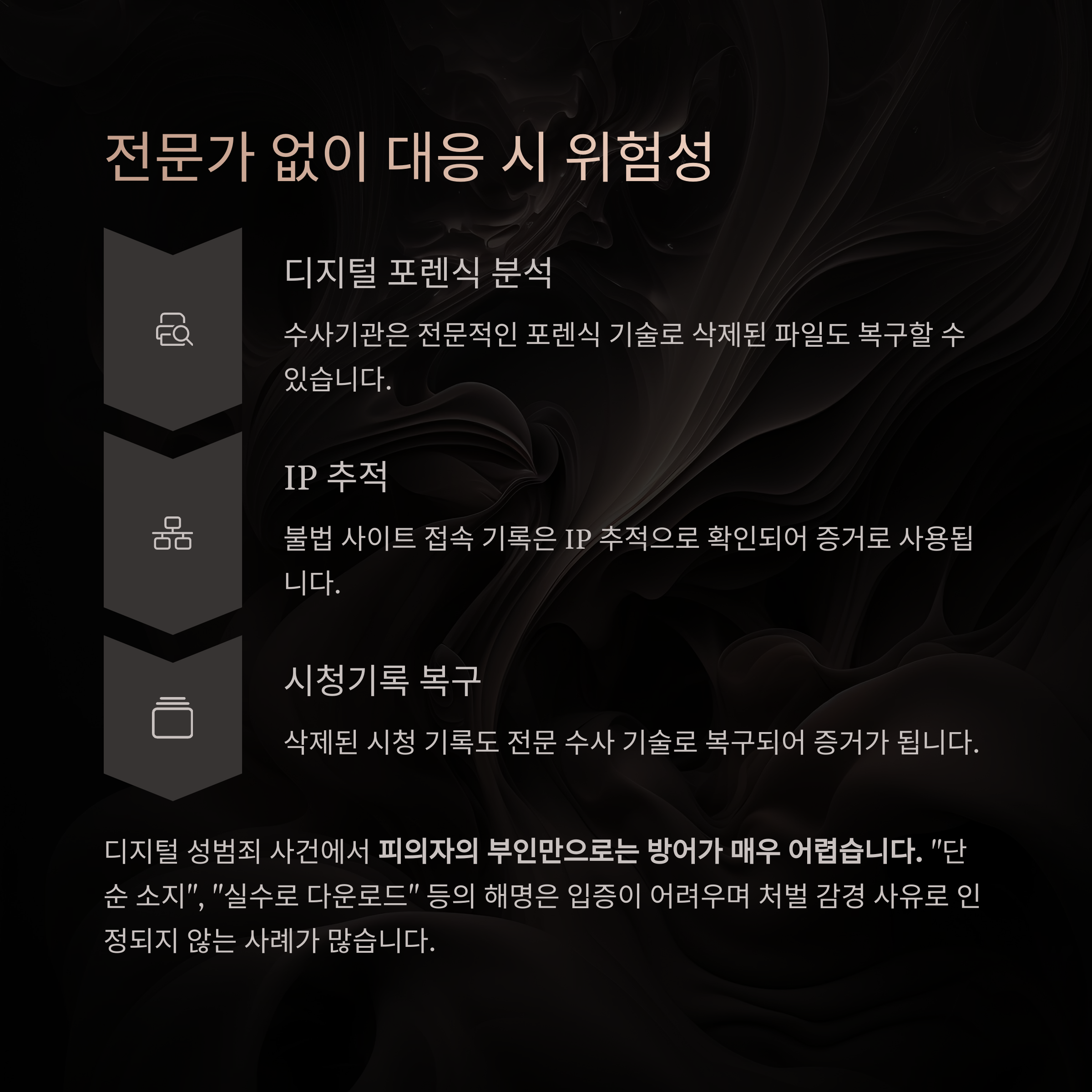 디지털 성범죄 사건은 디지털 포렌식 분석, IP 추적, 시청기록 복구 등