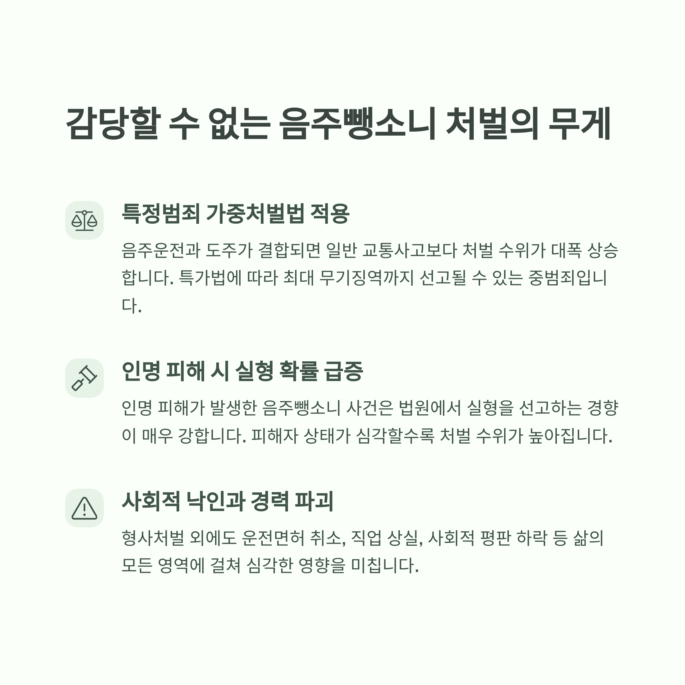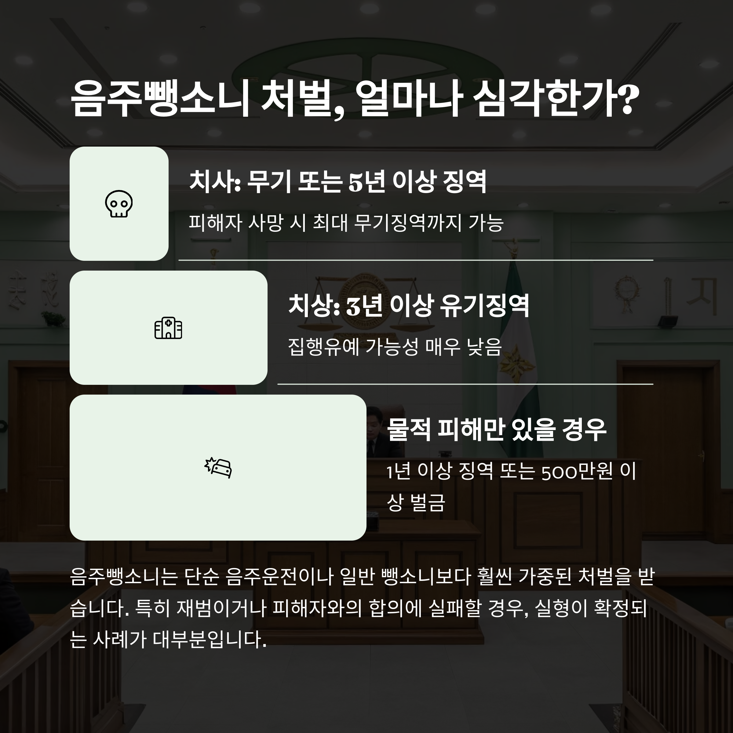 - 중상해 또는 사망 사고: 최소 3년 이상의 실형 가능성