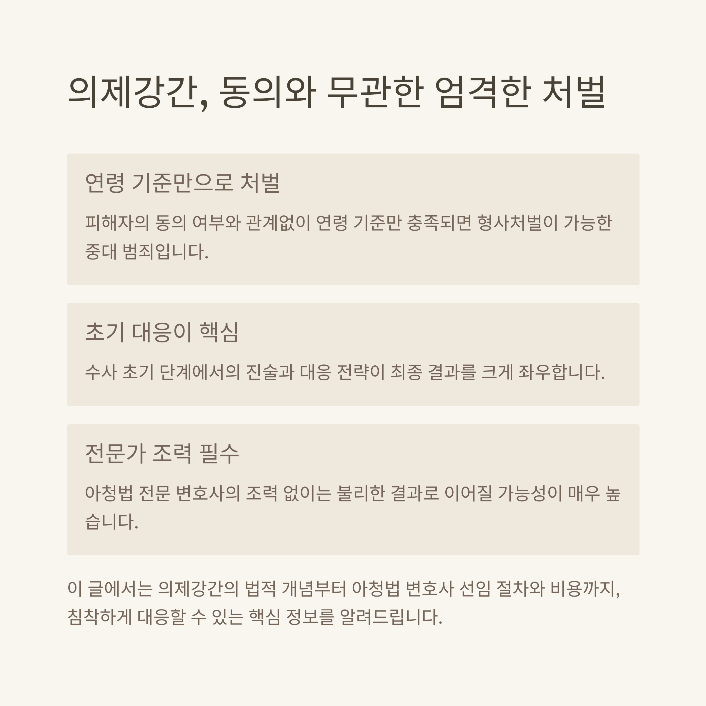 의제강간처벌, 아청법수사, 변호사선임비용, 실형예방, 성범죄대응전략