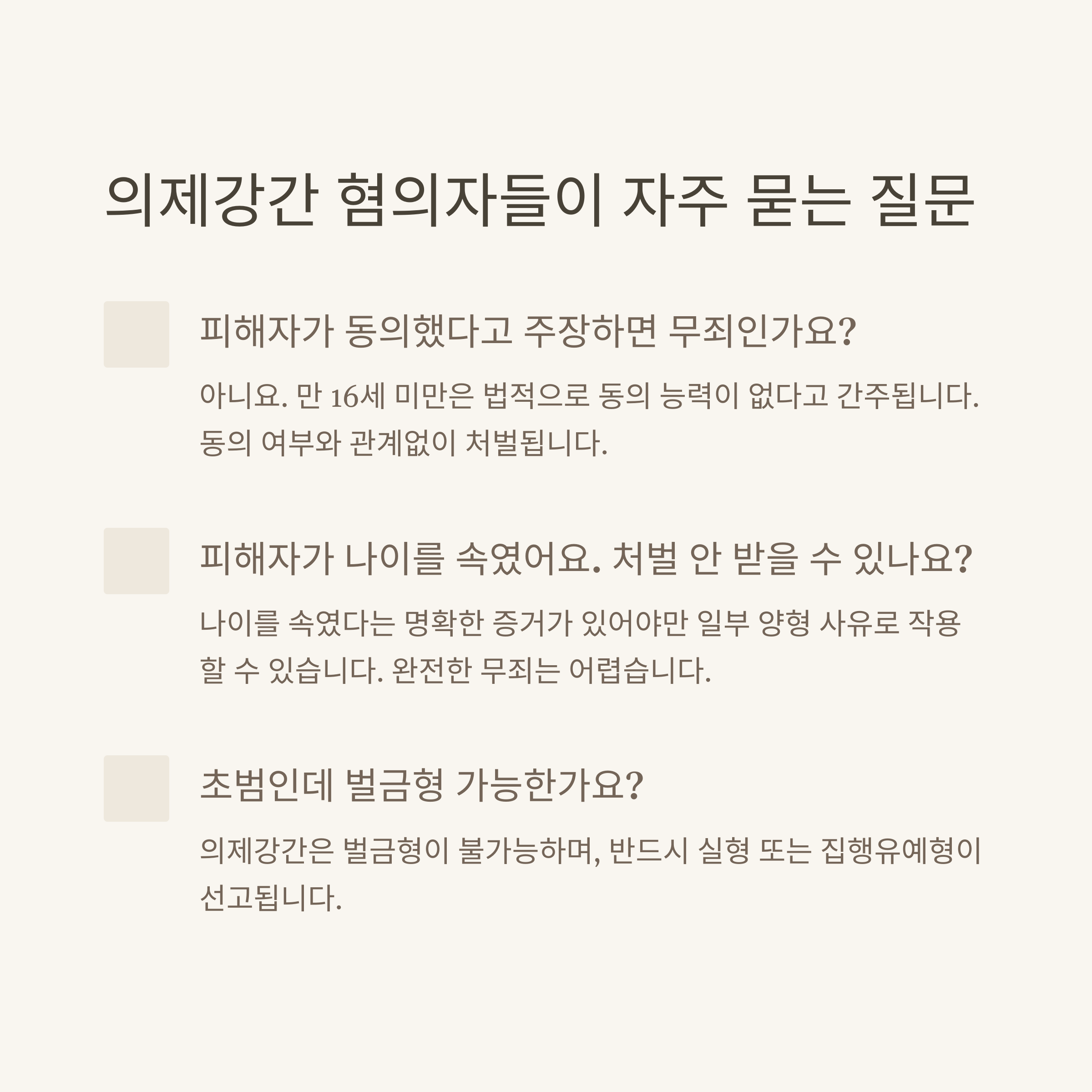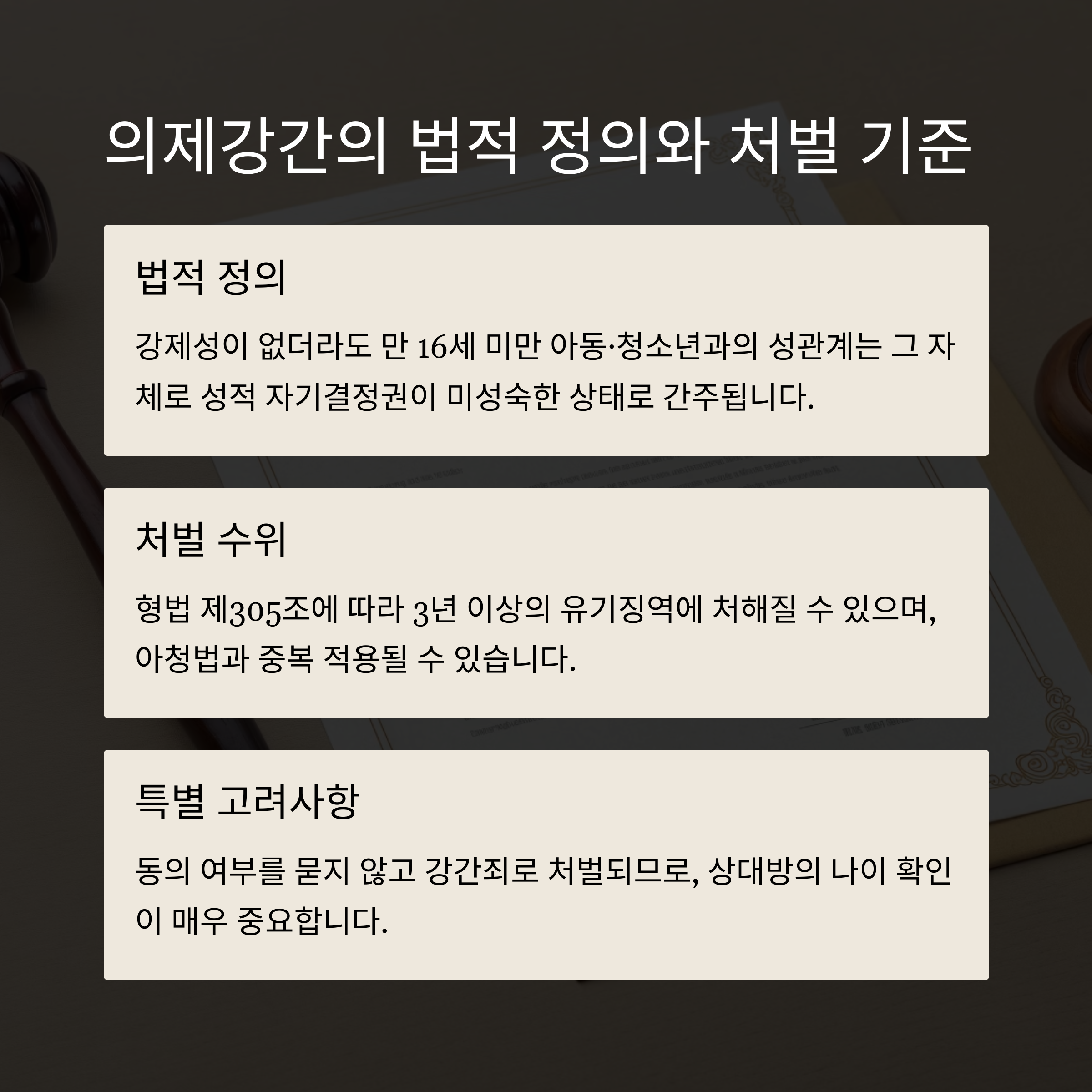 의제강간은 피해자의 동의 여부와 무관하게 형사처벌이 가능한 중대 범죄입니다.