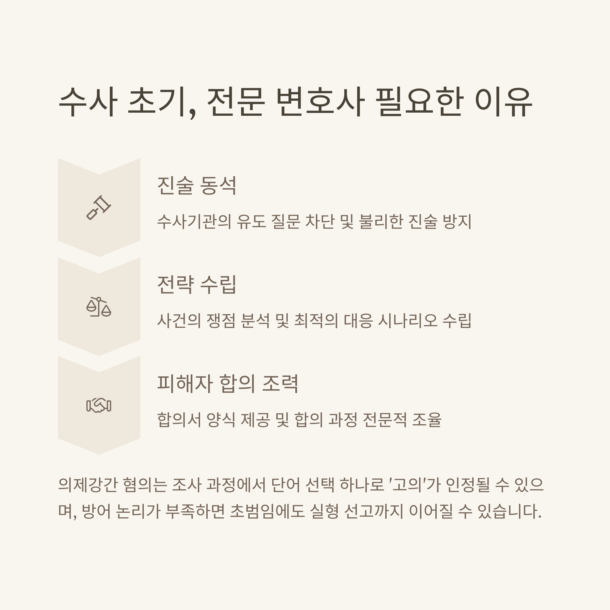 초기 수사 단계에서의 진술과 대응 전략이 결과를 좌우하게 됩니다.
