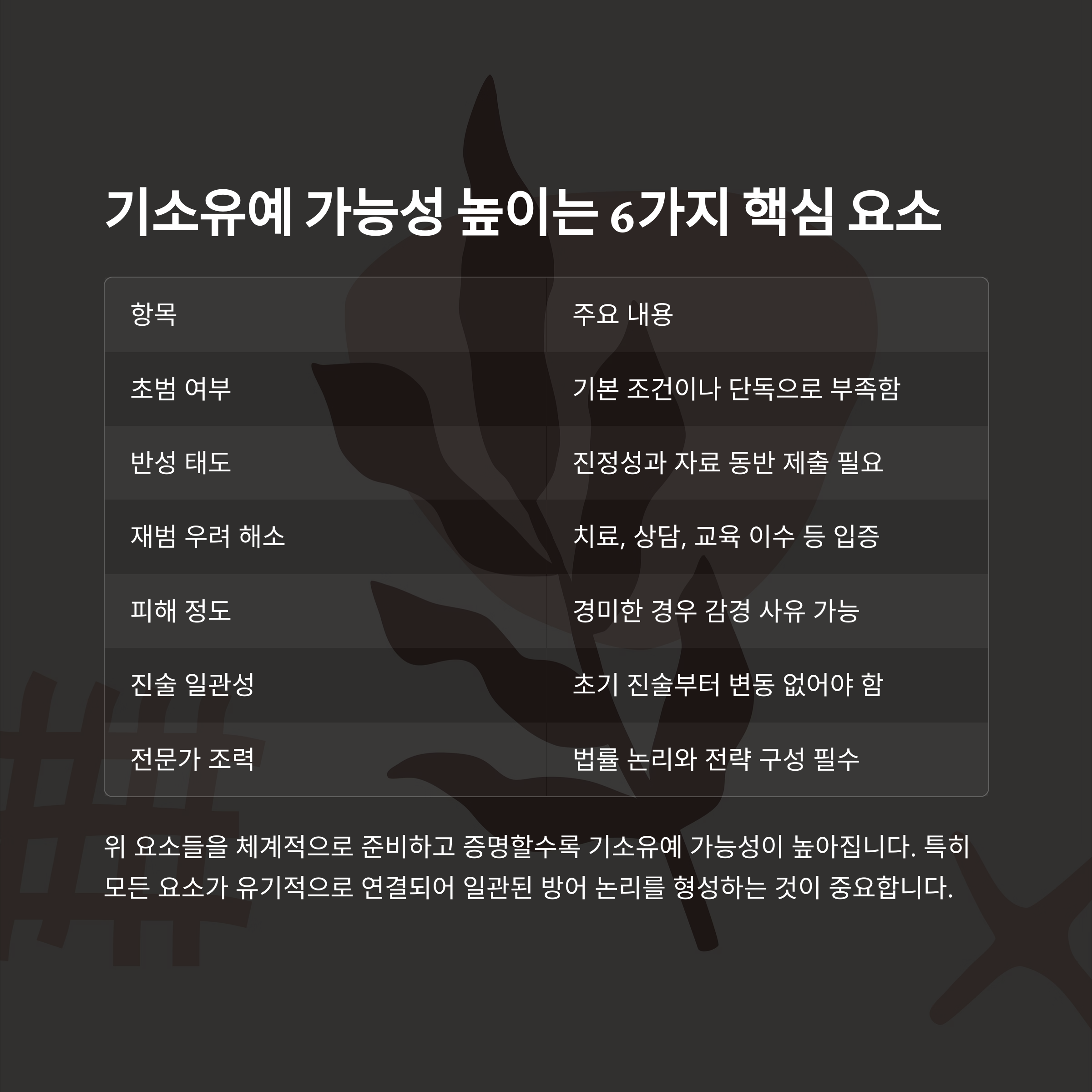 요약: 기소유예 가능성 높이는 6가지 핵심 요소