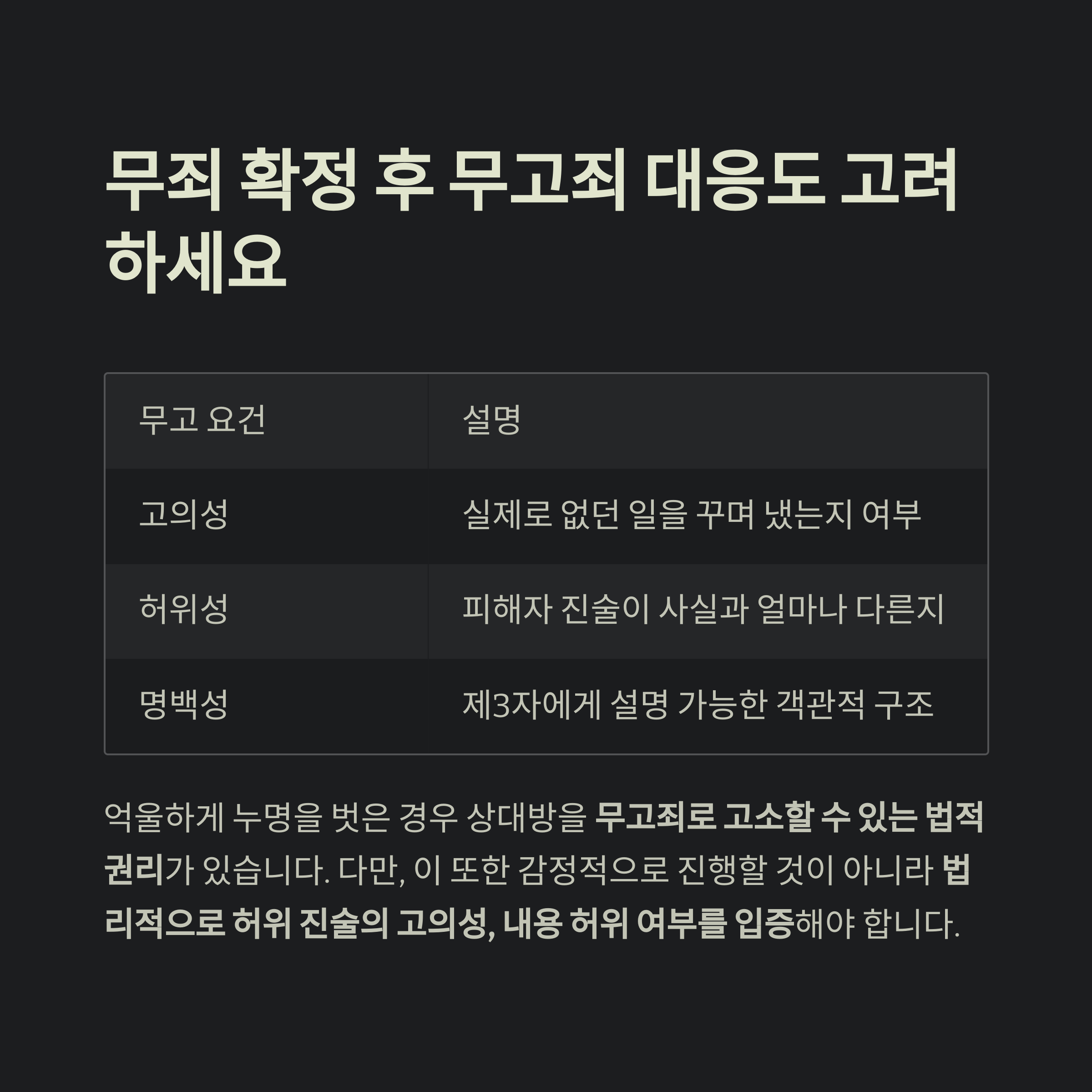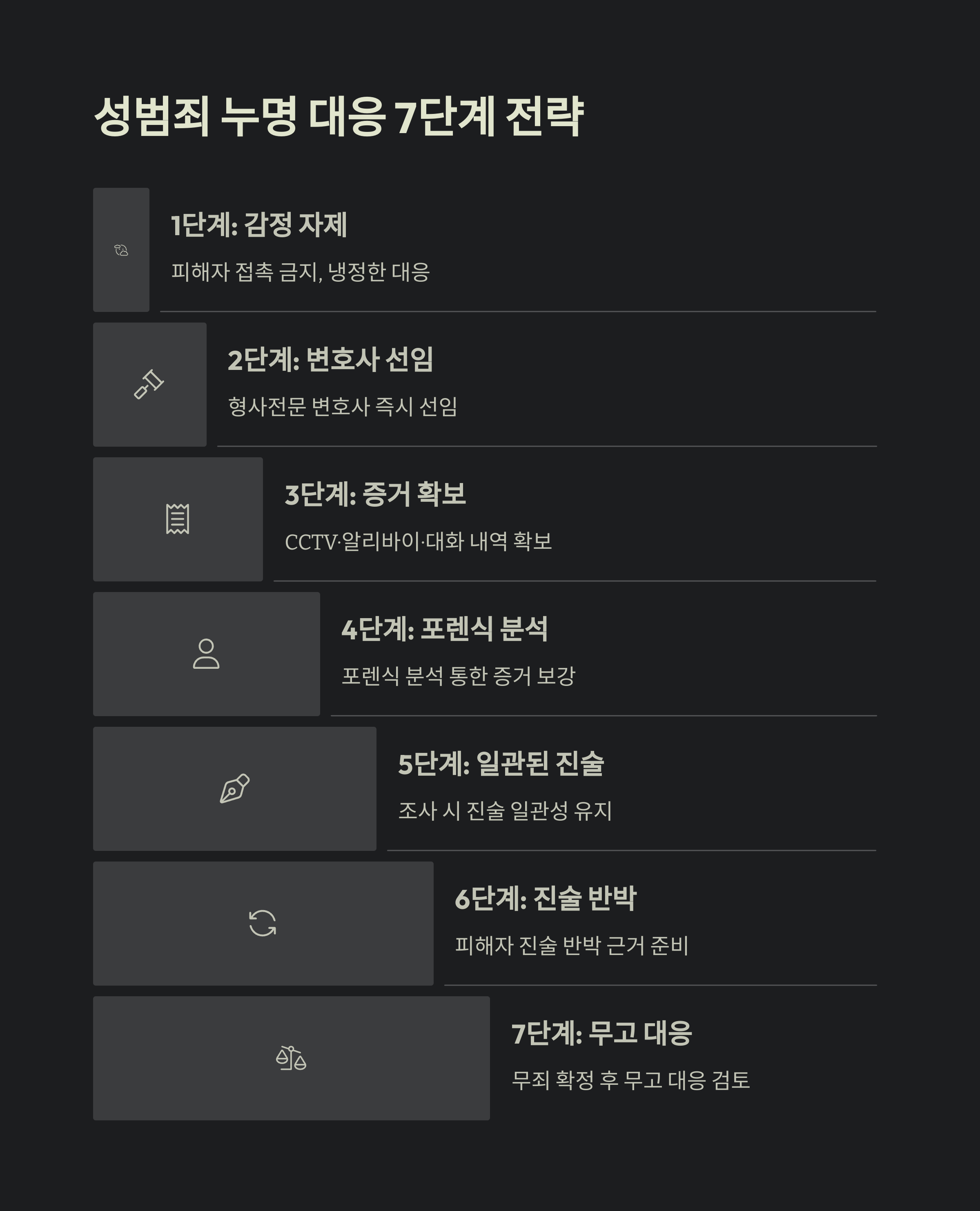 | 7단계 | 무죄 확정 후 무고 대응 검토 |