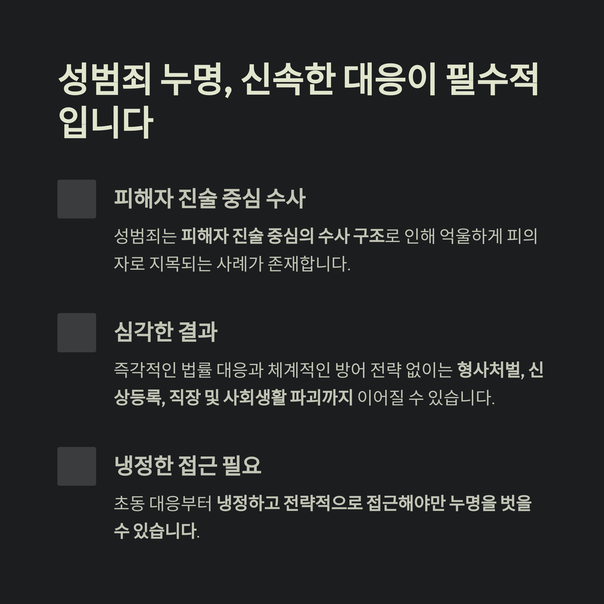 성범죄 혐의는 단순히 억울함을 호소한다고 해서 벗어날 수 있는 구조가 아닙니다
