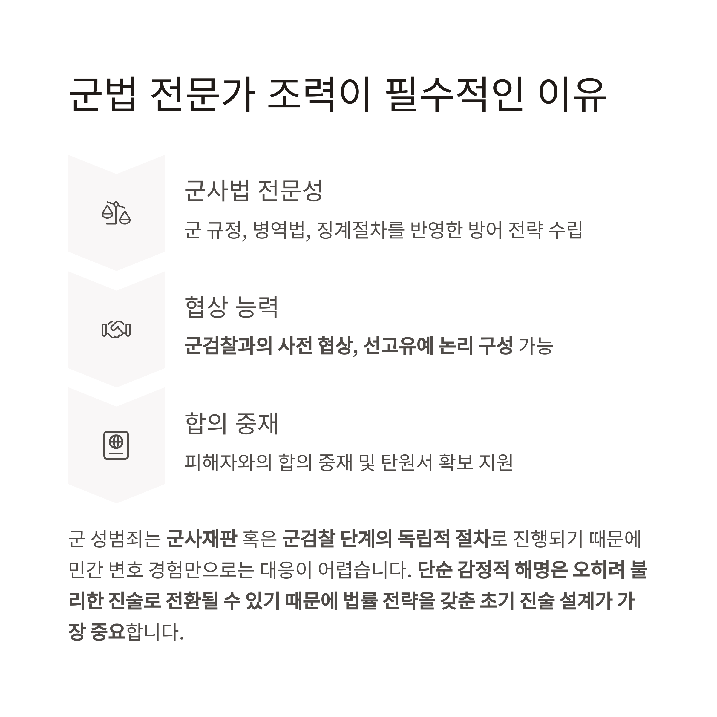 - 군 규정, 병역법, 징계절차 반영한 방어 전략