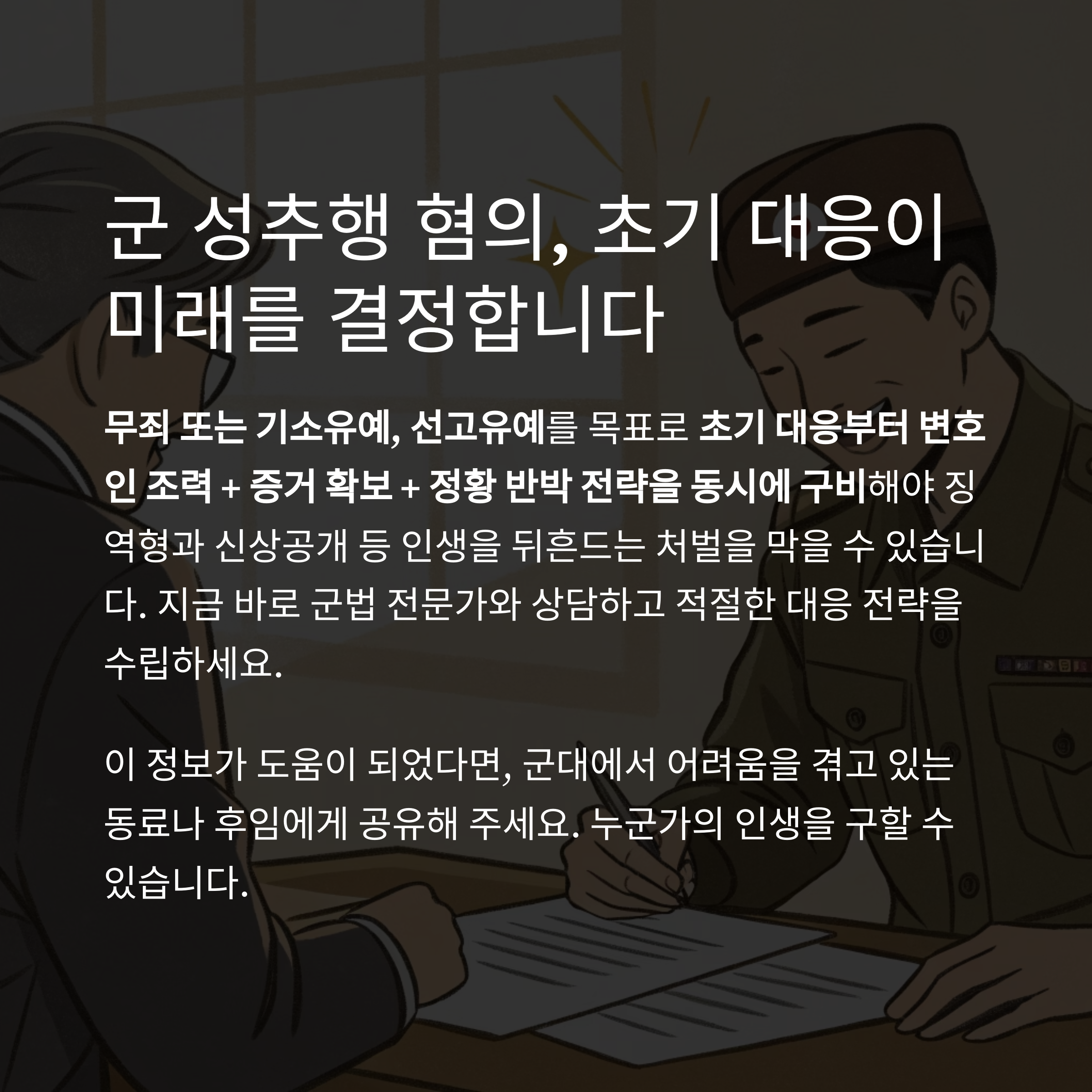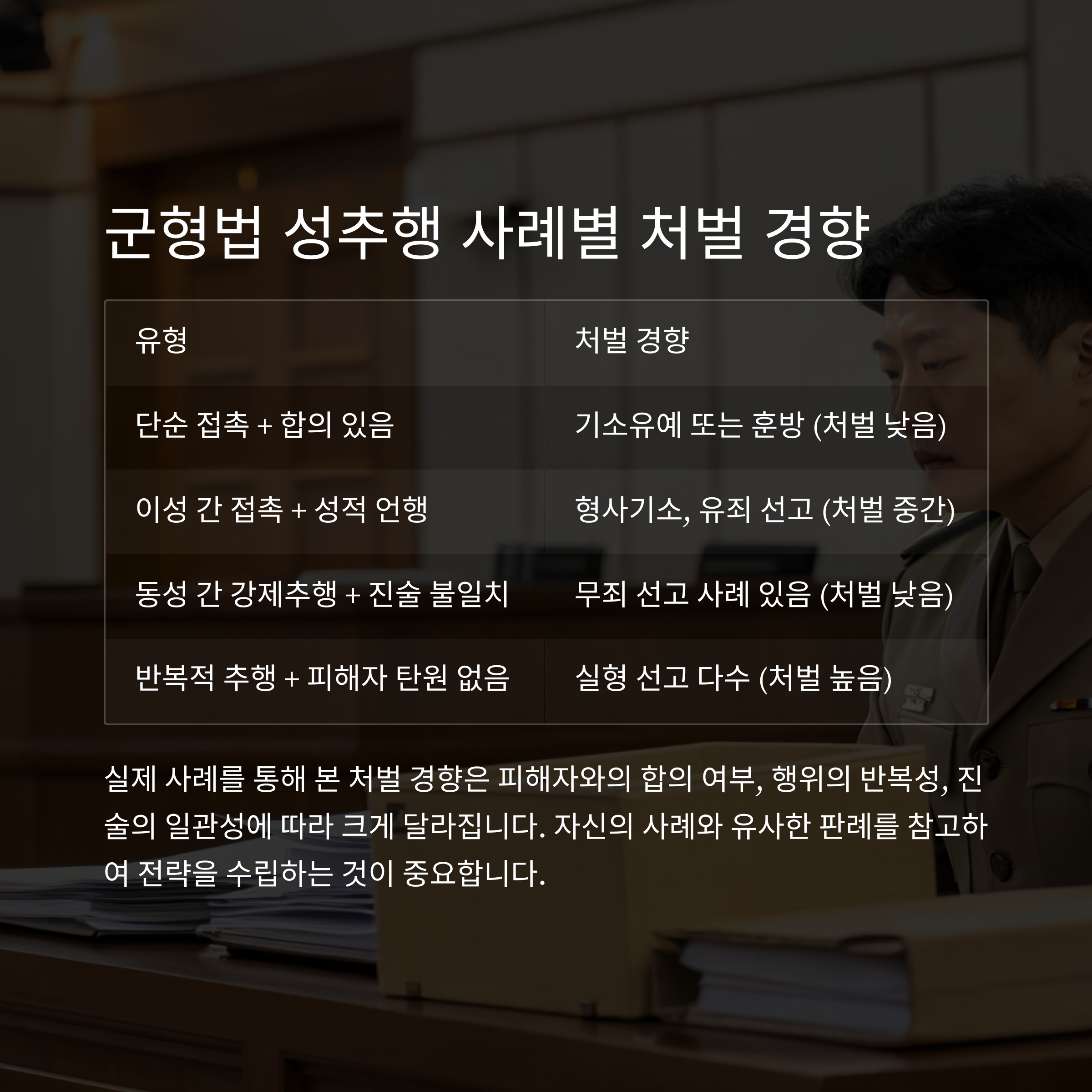 #군형법성추행 #기소유예전략 #군성범죄대응 #군사법무조력 #성범죄선고유예 #군대성범죄판례