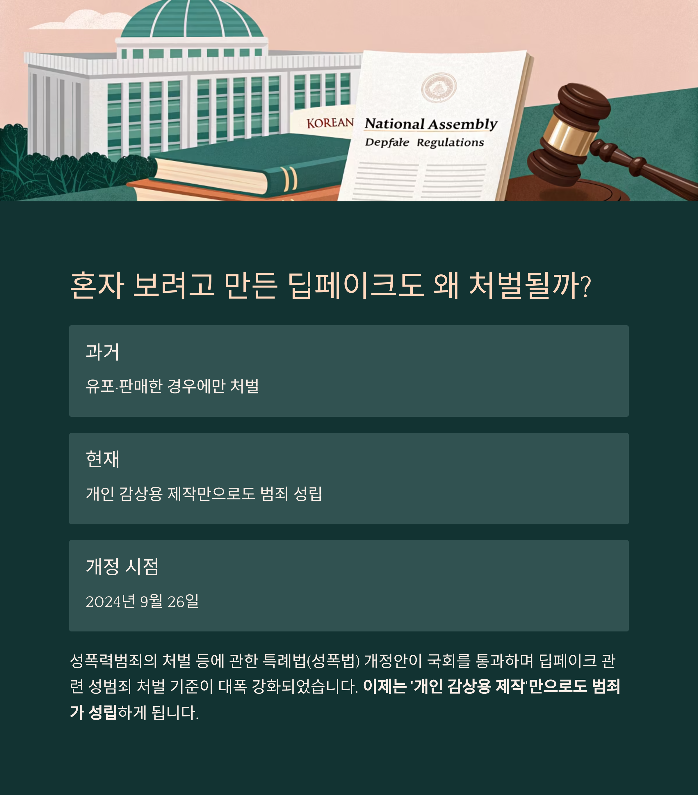 #딥페이크처벌 #혼자보려고제작해도처벌 #허위영상물금지 #딥페이크성범죄 #성폭법개정 #AI성범죄대응
