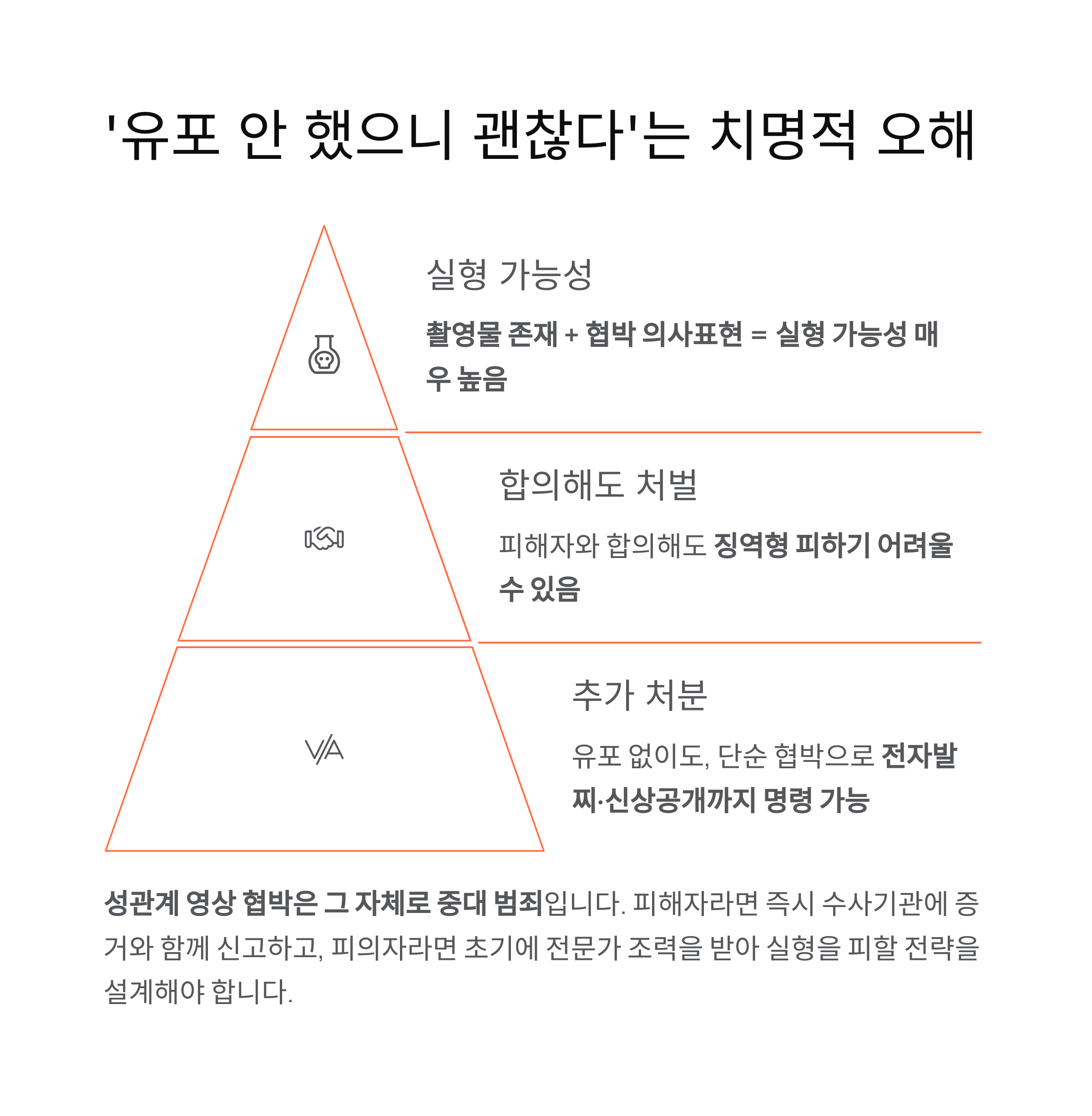 성관계 영상 또는 촬영물로 협박하는 행위는, 실제 유포 여부와 상관없이 중범죄로 간주되며