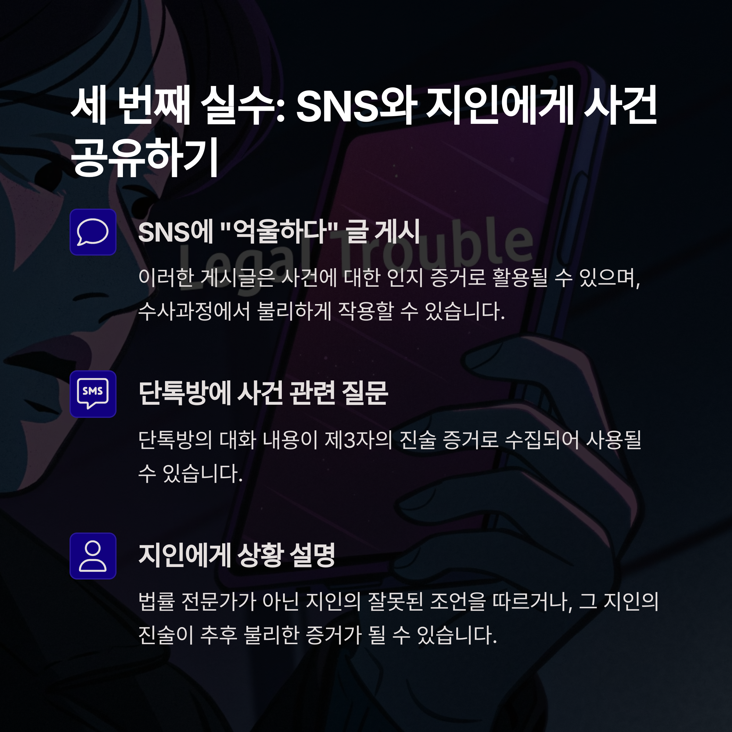 | SNS에 "억울하다"는 글 게시 | 해당 글이 사건에 대한 인지 증거가 될 수 있음 |
