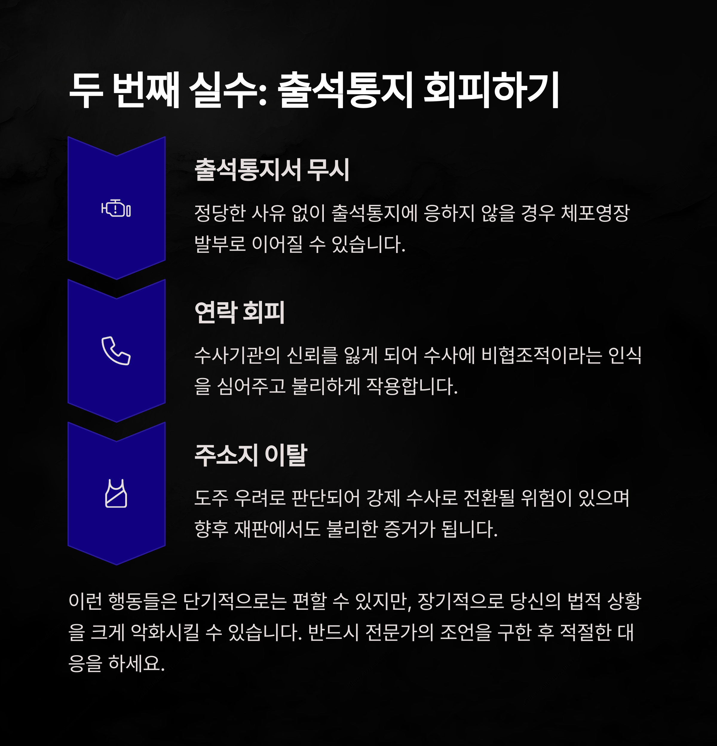 - 출석통지서 무시: 정당한 사유 없이 응하지 않을 경우 체포영장 발부 가능
