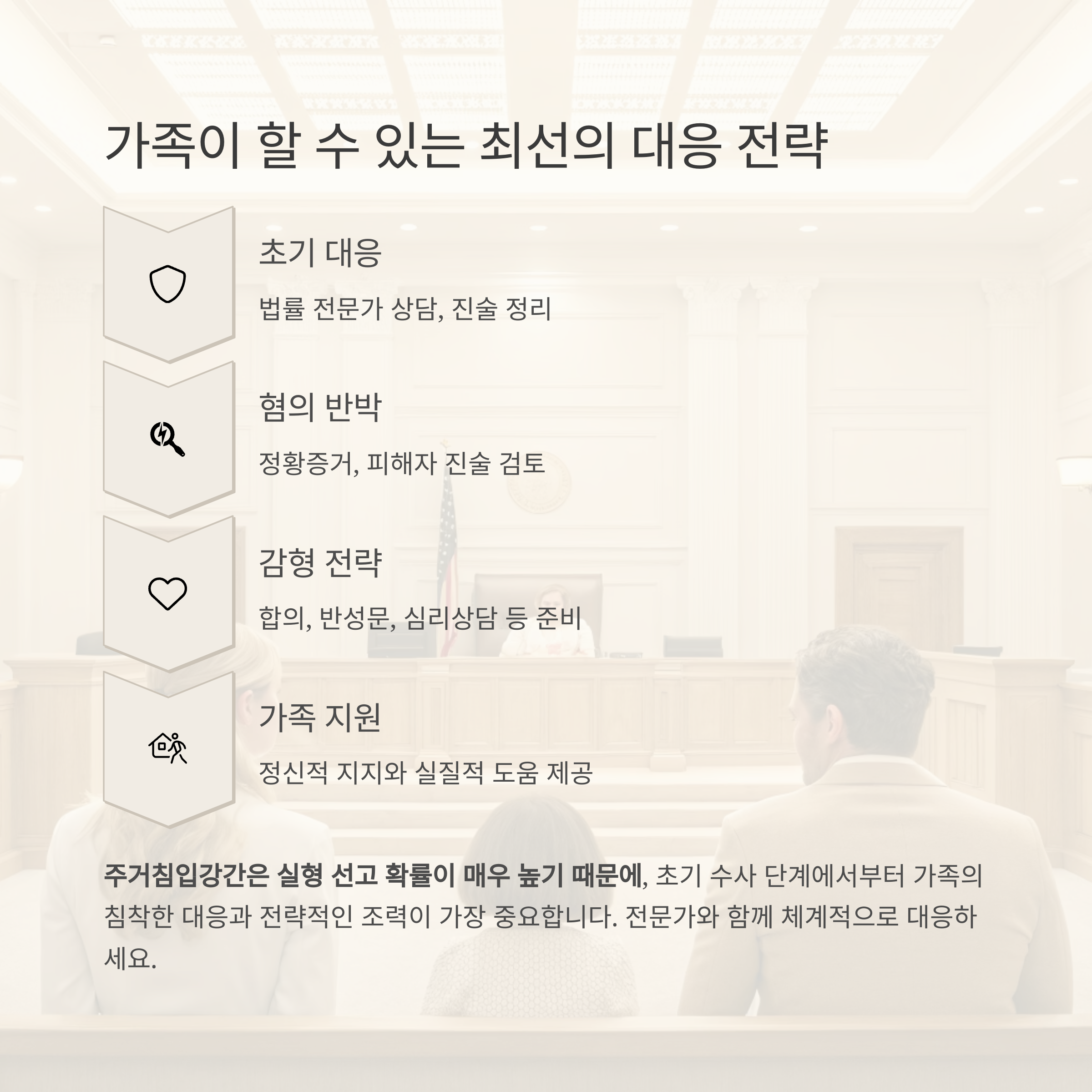 주거침입강간은 실형 선고 확률이 매우 높기 때문에, 초기 수사 단계에서부터 가족의 침착한 대응과 전략적인 조력이 가장 중요합니다.