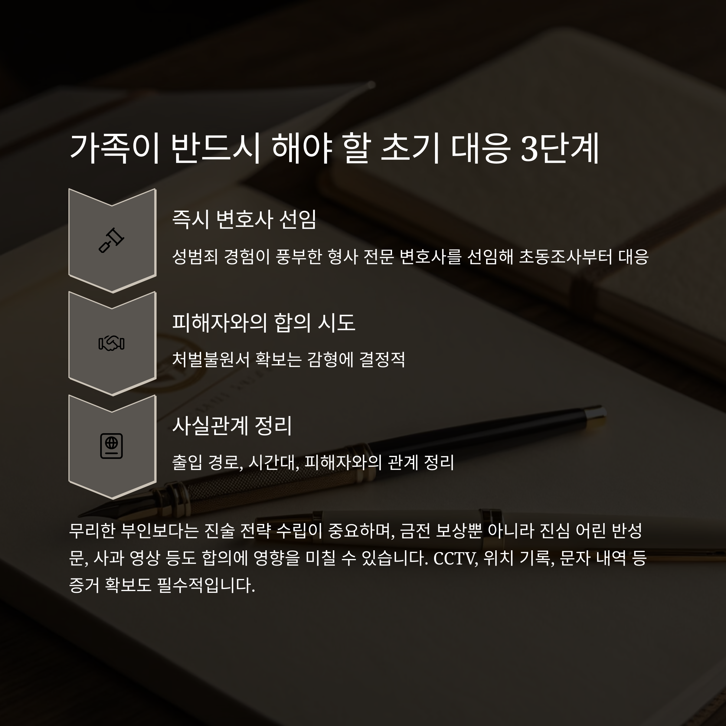 주거침입강간대응, 성범죄초기대처, 무거운처벌감형, 피해자합의전략, 가족대응방향, 형사변호사선임