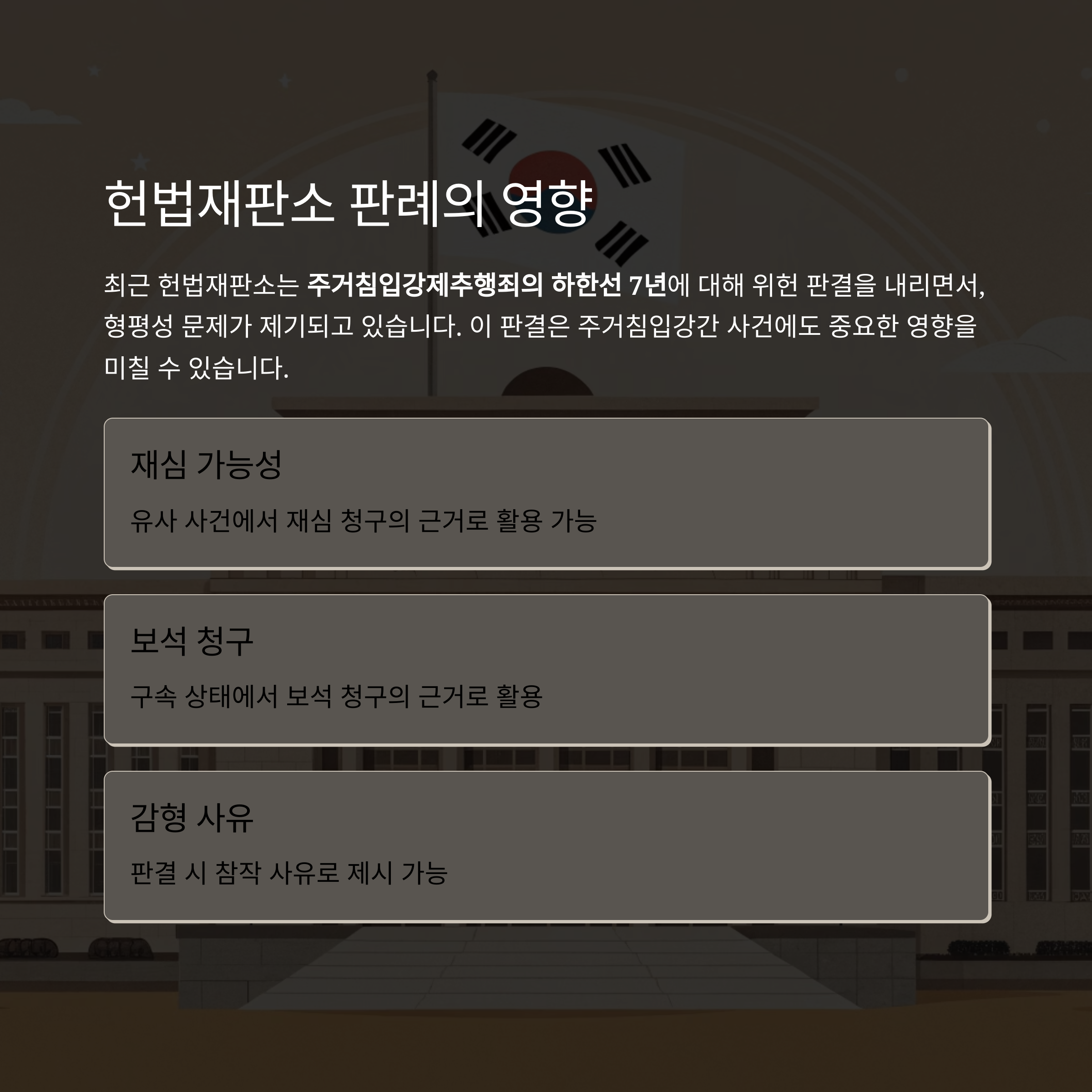최근 헌법재판소는 주거침입강제추행죄의 하한선 7년에 대해 위헌 판결을 내리면서, 형평성 문제가 제기되고 있습니다.