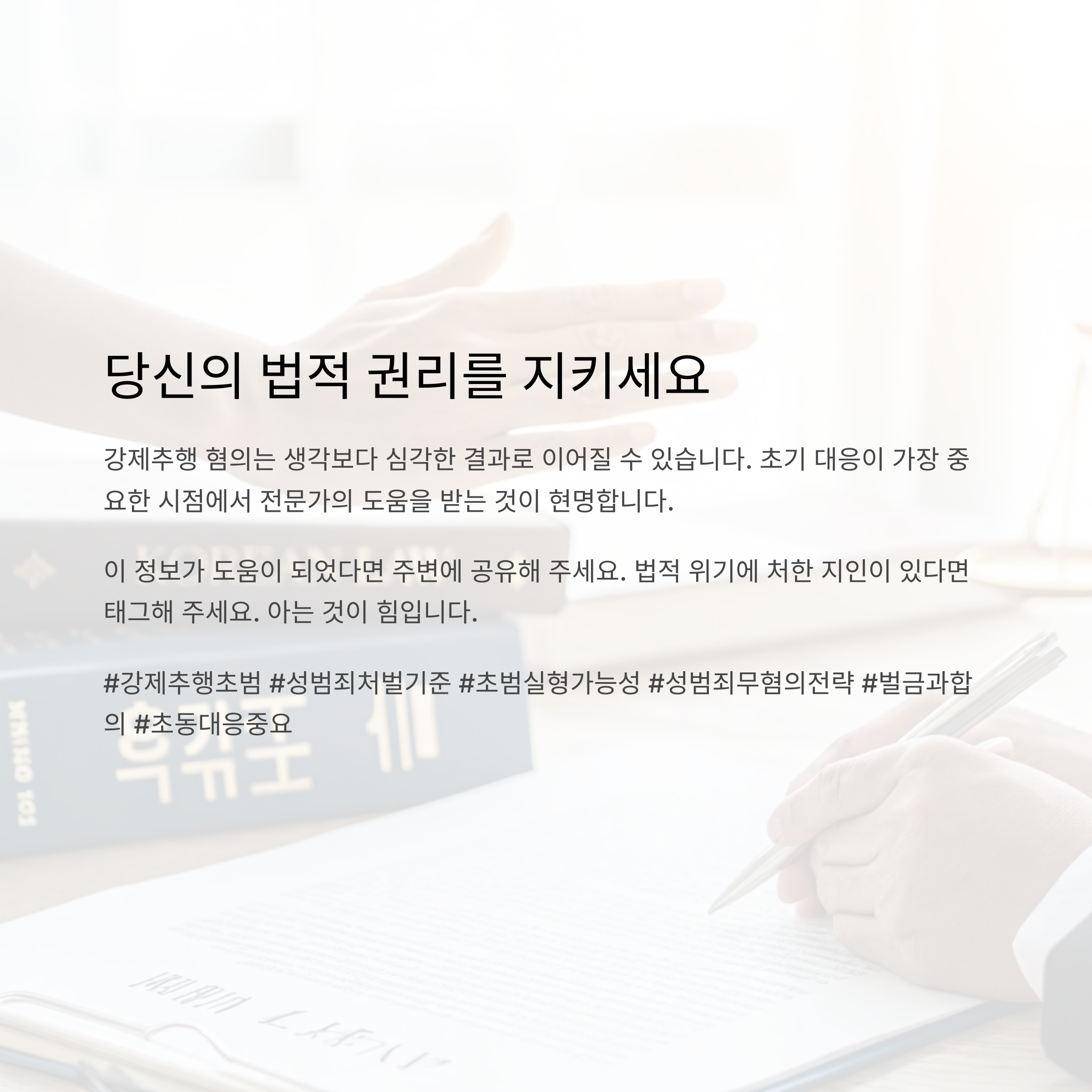 강제추행은 성범죄 중에서도 경미하게 여겨지는 경우가 있으나, 초범이라도 실형이 선고되는 사례가 적지 않습니다. 2025년 현재 강화된 법적 기준 아래, 벌금형은 예외일 뿐입니다. 초기 대응부터 전략적으로 접근하지 않으면, 단순 실수도 인생 전체를 뒤흔들 수 있습니다.