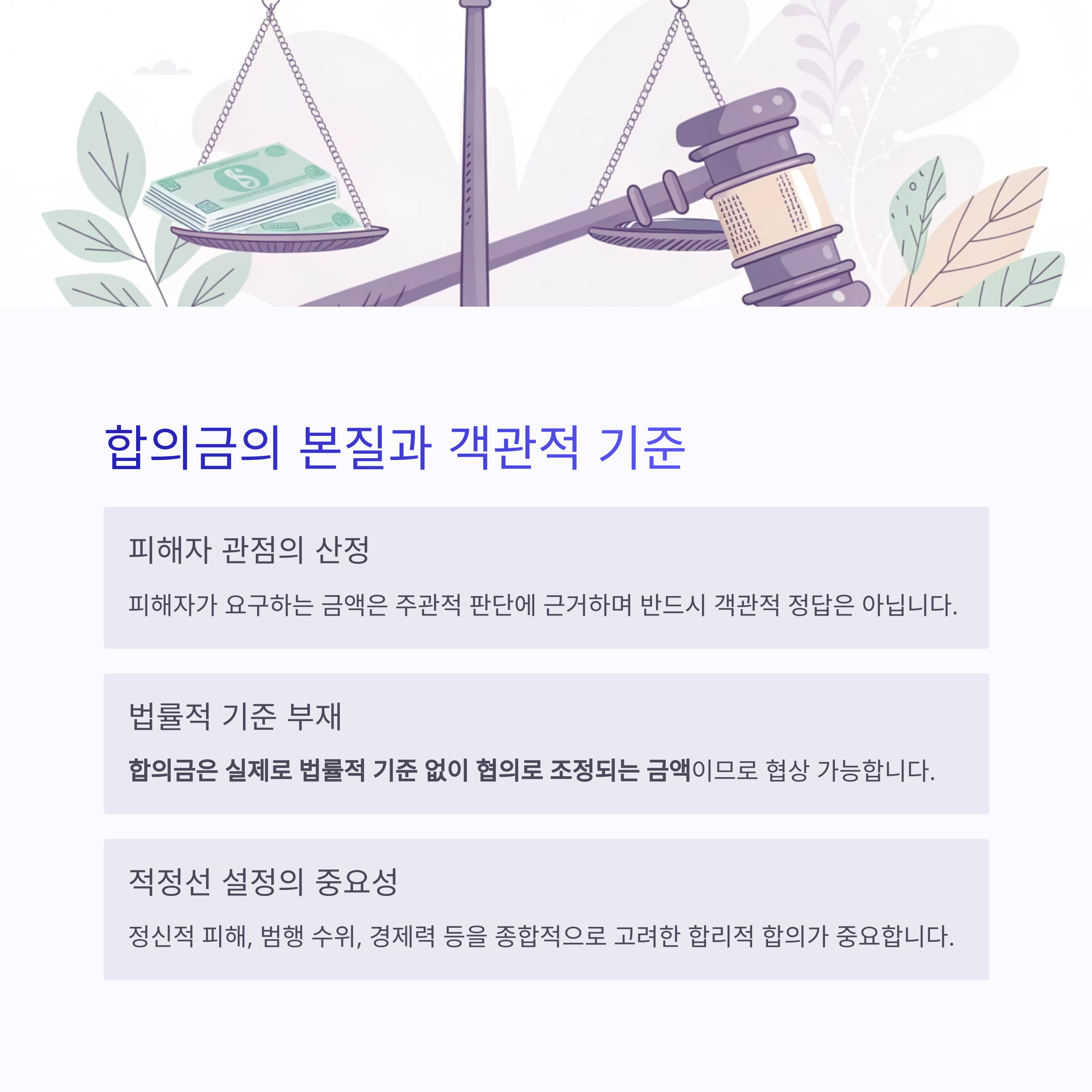 합의금은 실제로 법률적 기준 없이 협의로 조정되는 금액이기 때문에,