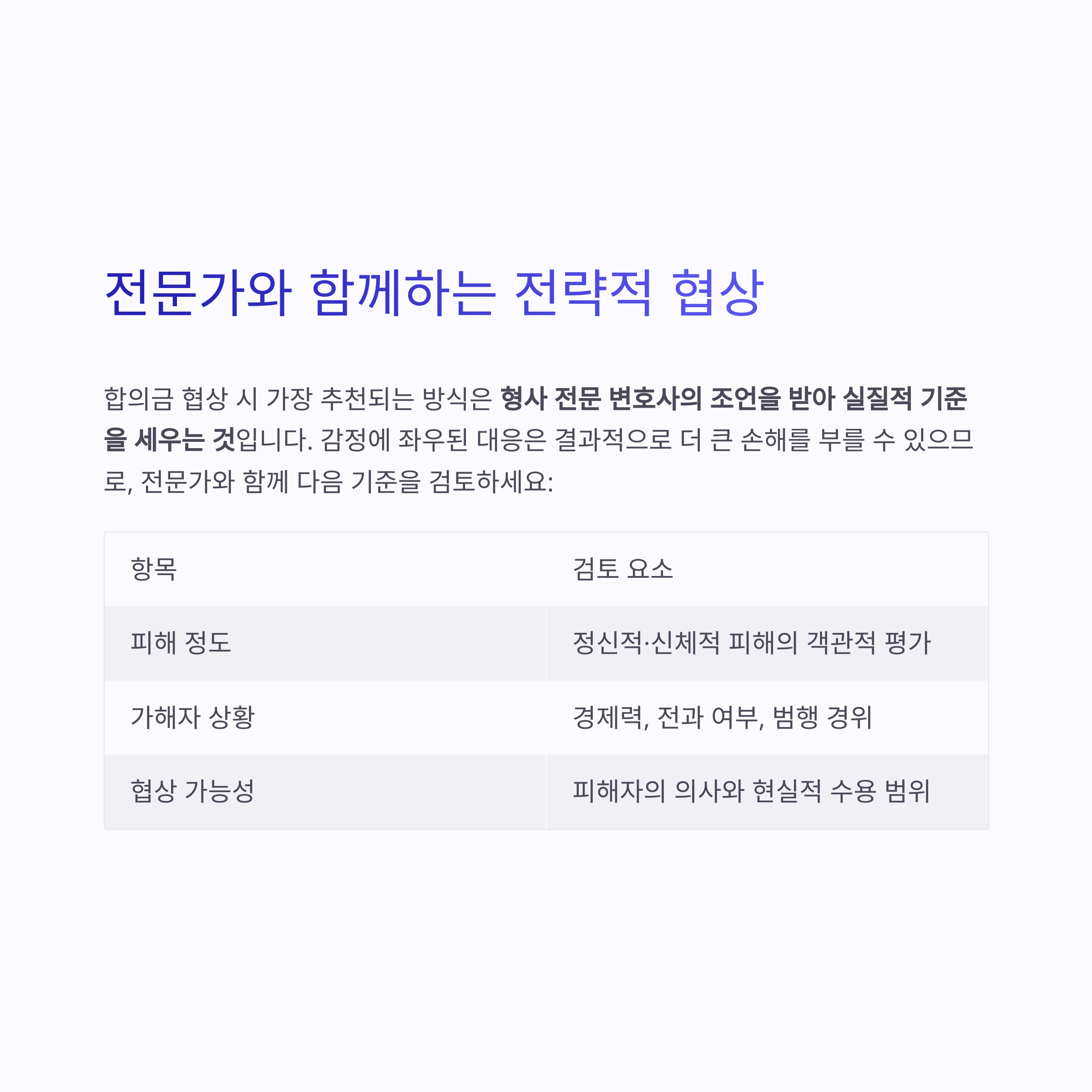 이 글에서는 피해자 요구에 무조건 따르지 않아도 되는 이유와 합의금 협상의 핵심 포인트를 설명합니다.