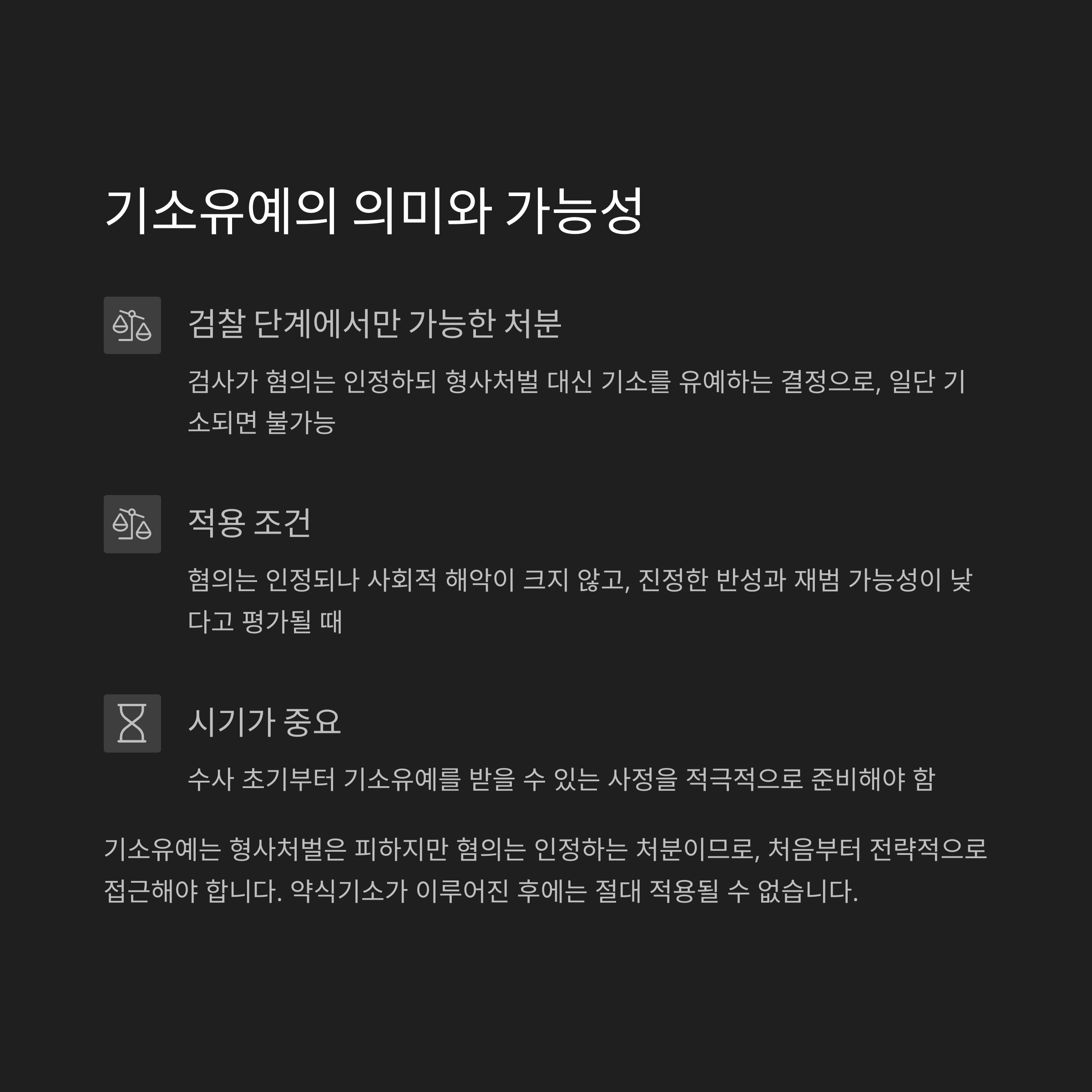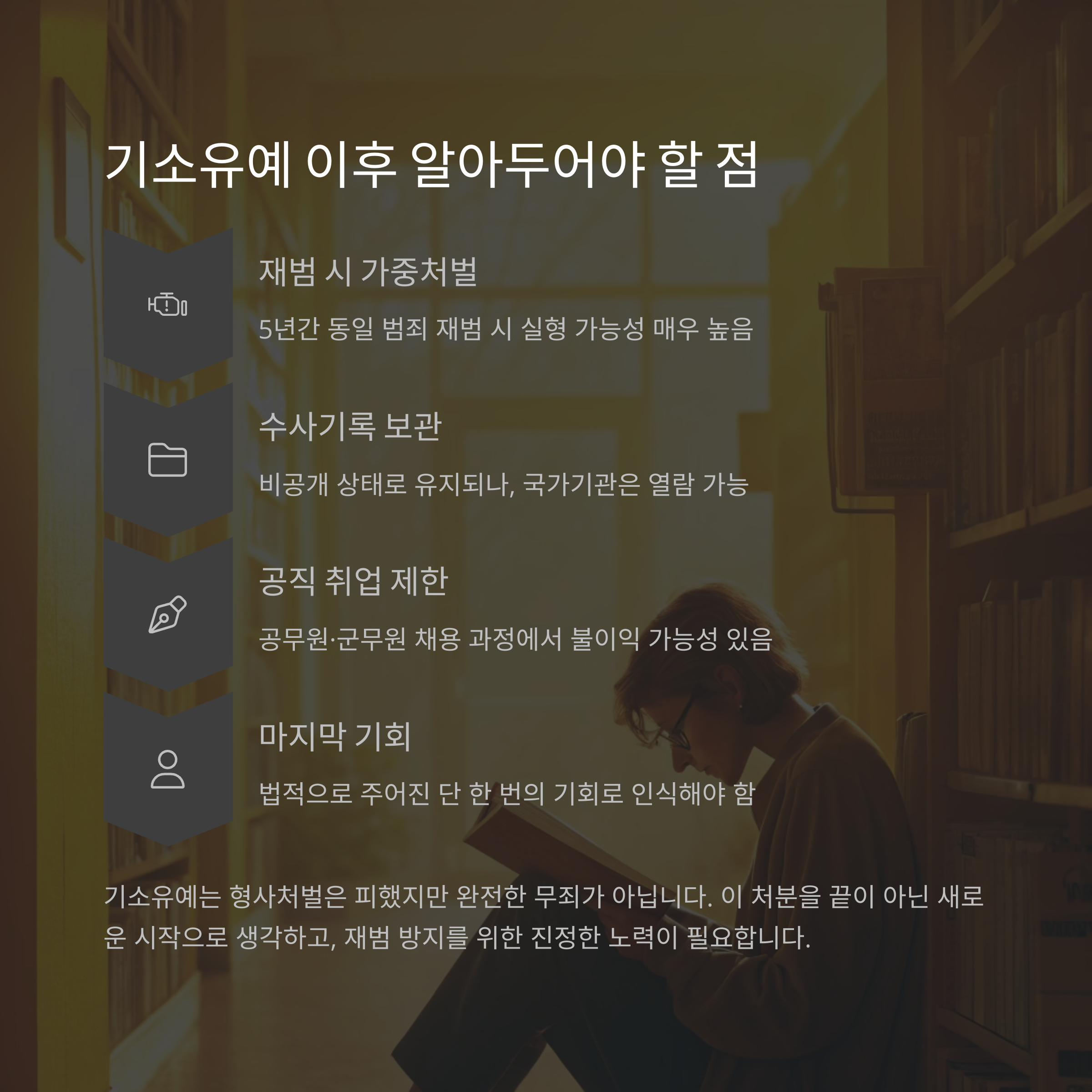 따라서 기소유예를 ‘끝’이 아니라 법적으로 주어진 마지막 기회로 생각해야 합니다.