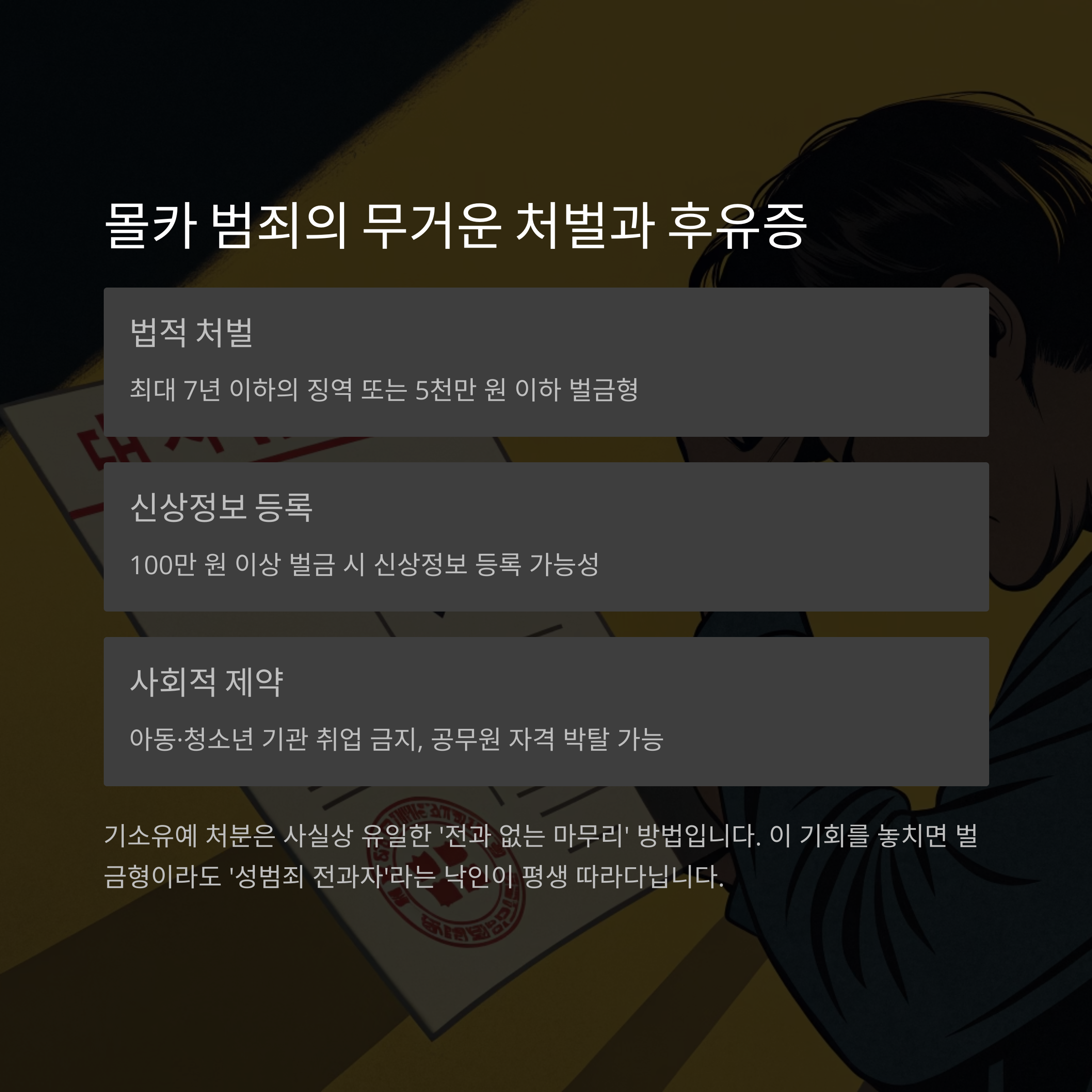 | 신상정보 등록 | 100만 원 이상 벌금 시 등록 가능성 존재 |